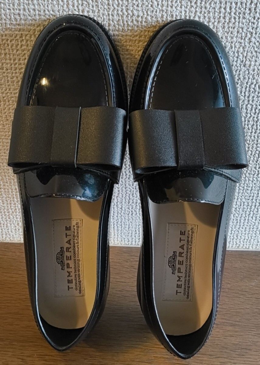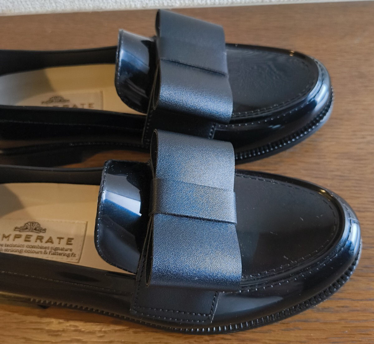 LE TALON TEMPERATE DECO テンパレイト デコ リボンローファー モカシン サイズ37 23.0cm ブラックカラー PVC製
