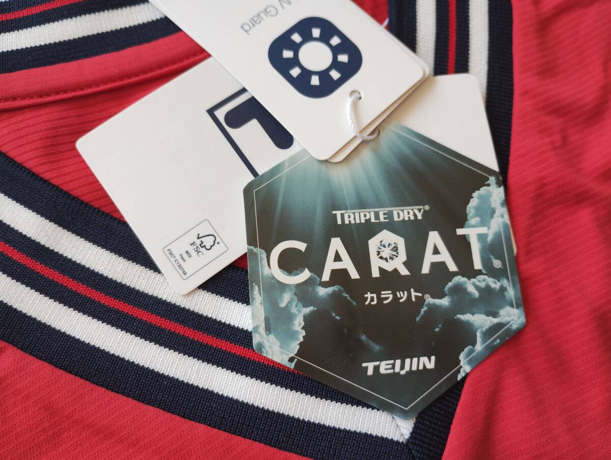 UV DRY 襟元のVラインがすっきりと見せてくれます。シンプルなデザインでパンツともスカートとも合わせやすいことと思います。定価は¥9790です。
