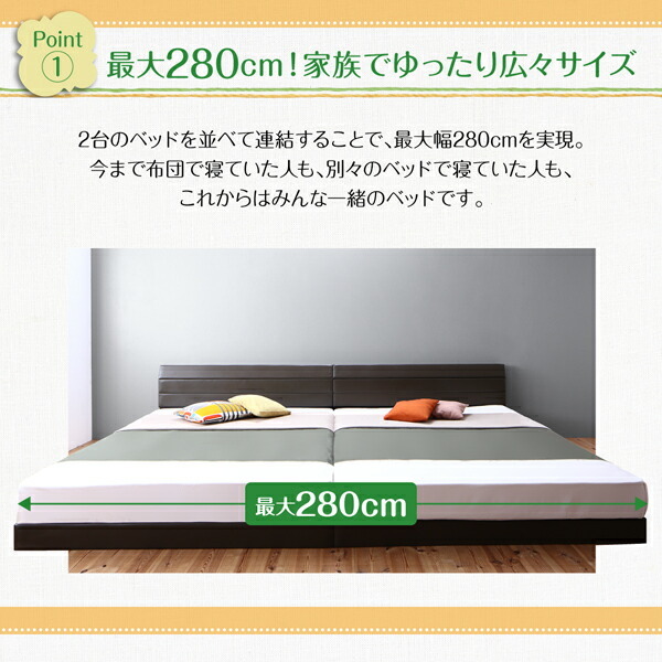親子で寝られる棚・コンセント付きレザー連結ベッド 国産ボンネルコイルマットレス付き ダブル