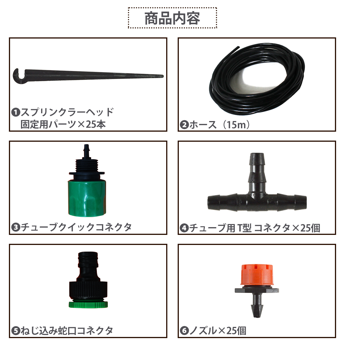 ガーデン シャワー 散水 ホース 15m ノズル 25ヶ 花壇 水まき 自動散水 対応 延長可能 芝生 熱中症対策 屋外 水やり