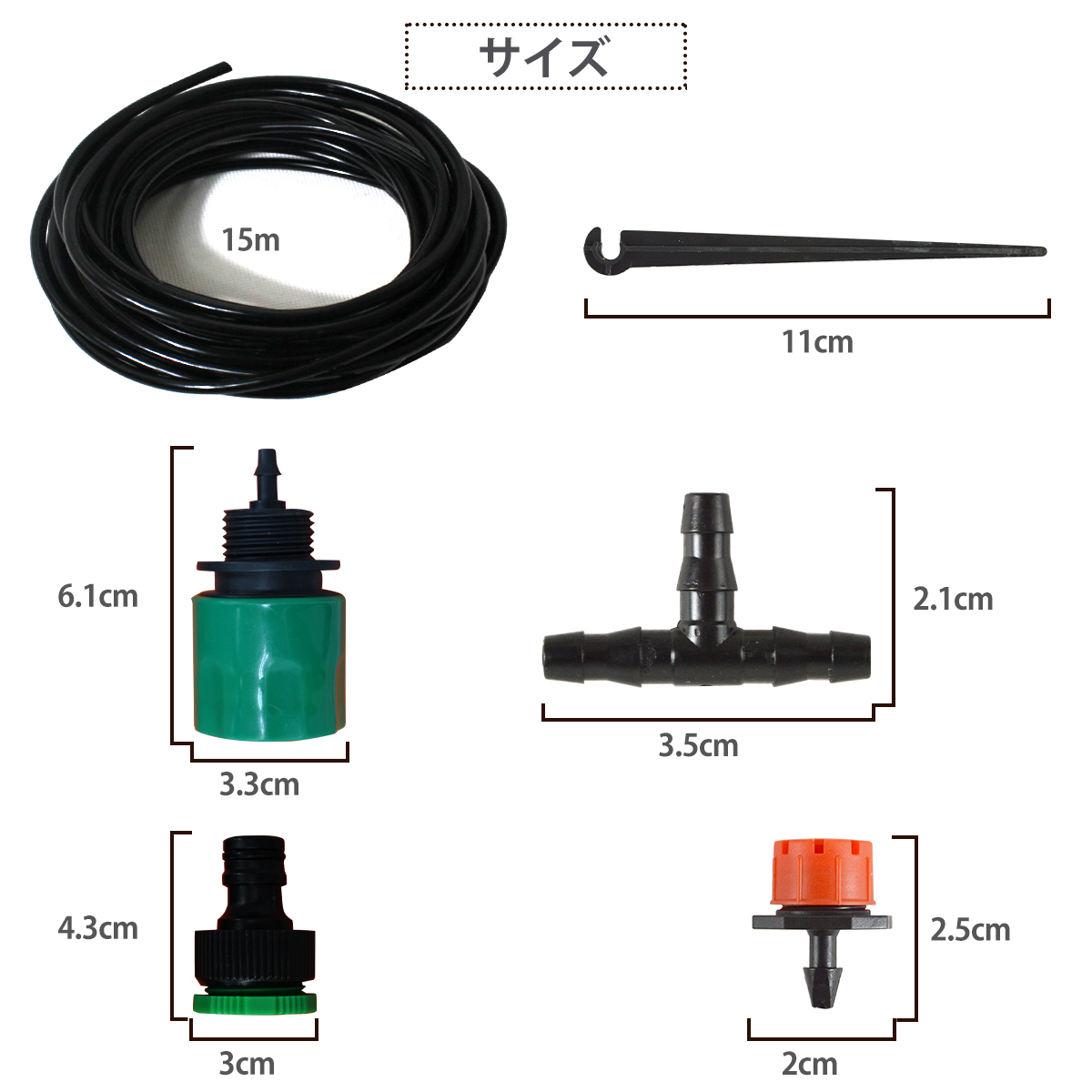 仕様:ホースを好みの長さにカットして先端用ノズルを取り付けます。
