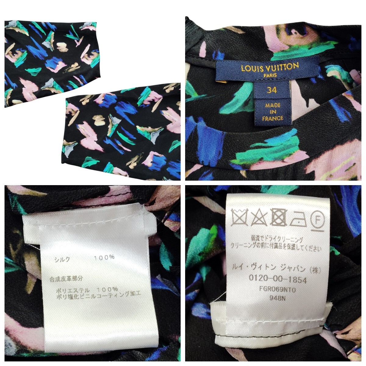 | ☆LOUIS VUITTON ルイ・ヴィトン シルク シフォン ワンピース LV 総柄 ブラック グリーン ブルー ピンク #34 |