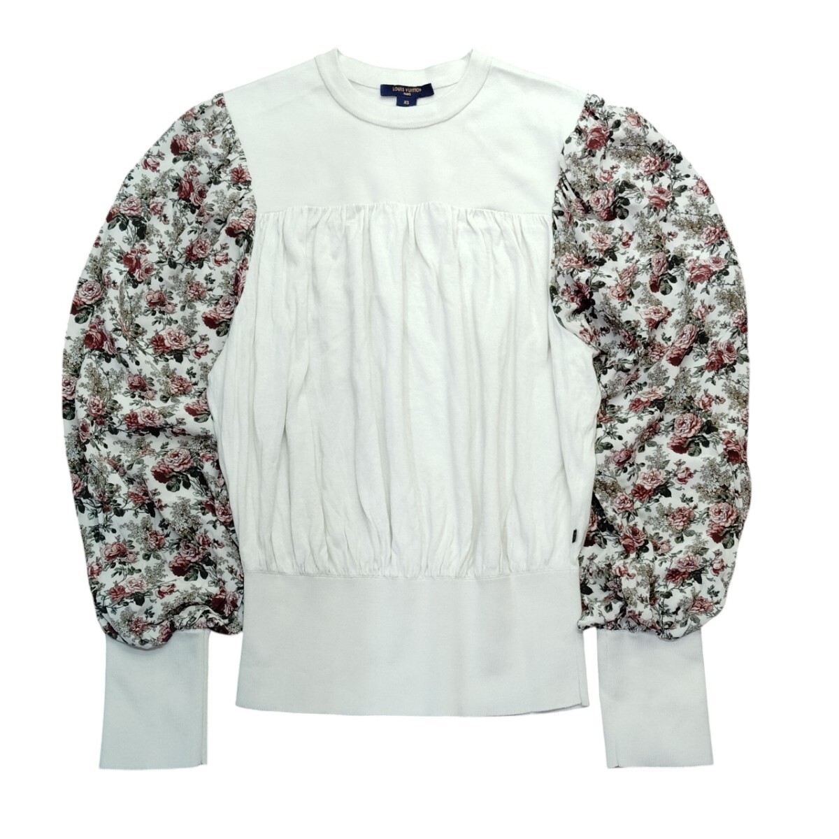 ☆LOUIS VUITTON ルイ・ヴィトン 19AW フローラル ニット パプスリーブ プルオーバー ウール カシミヤ シルク 花柄 ベージュ #XS |