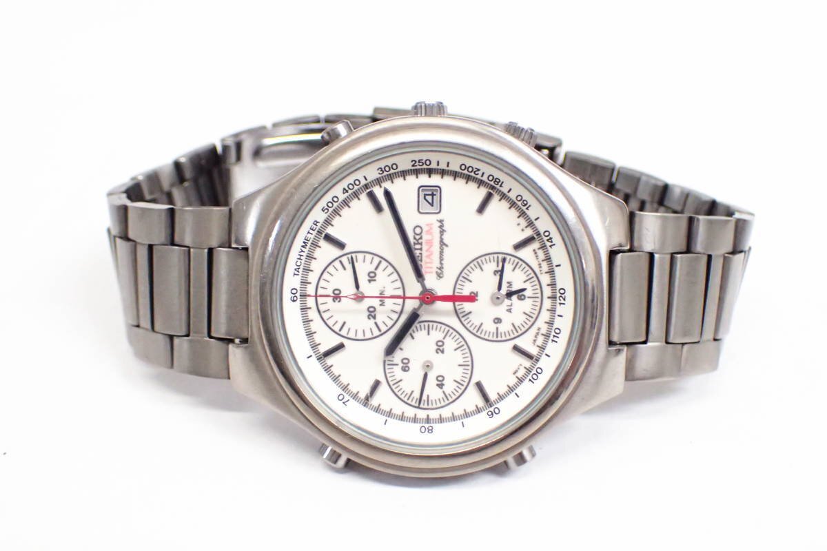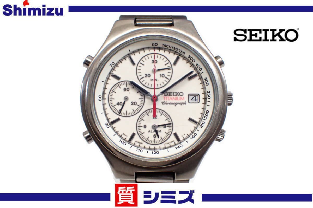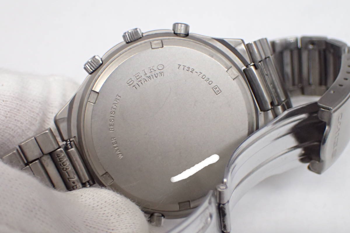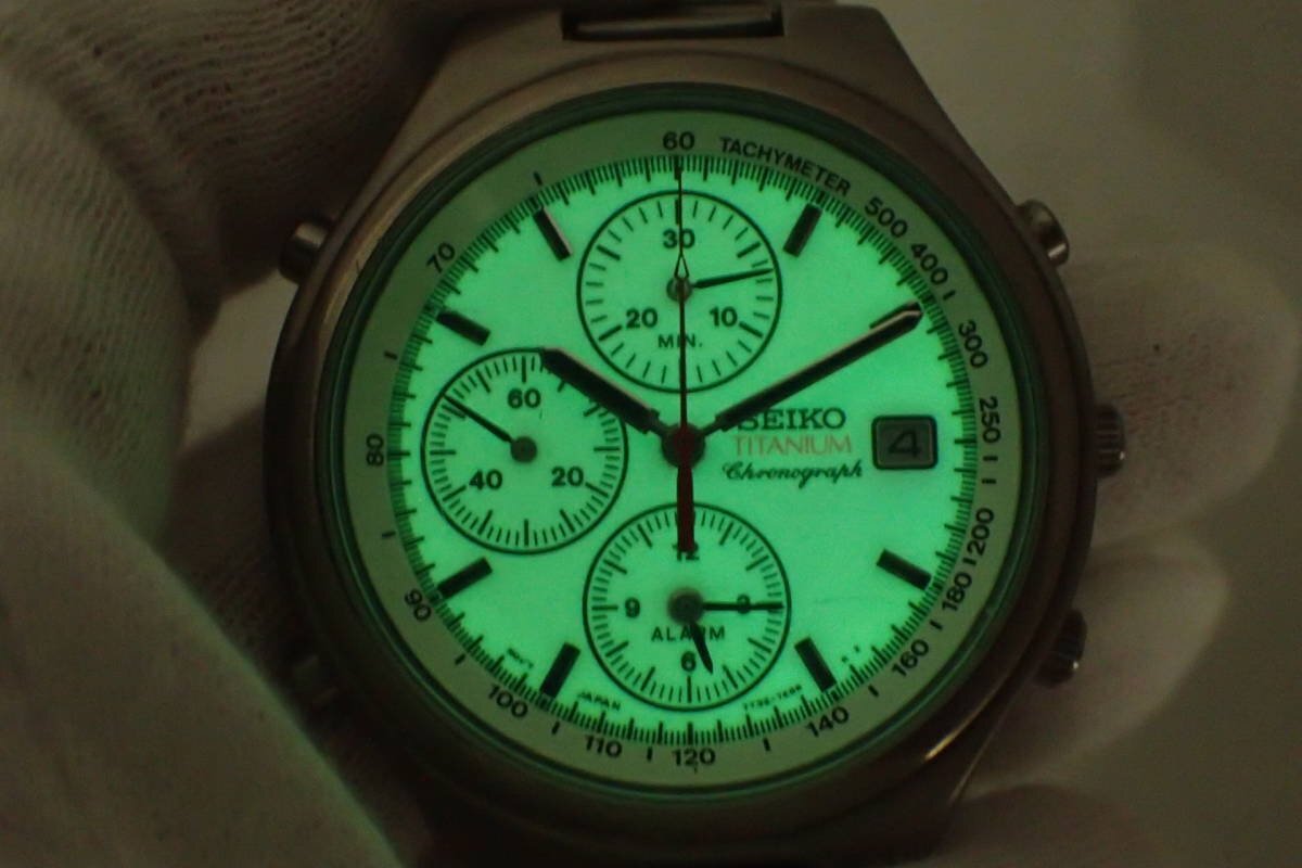 1円【SEIKO】 稼働品 訳有 セイコー チタン 全面夜光文字盤 7T32-7D20 クロノグラフ クォーツ腕時計 デイト◆質屋