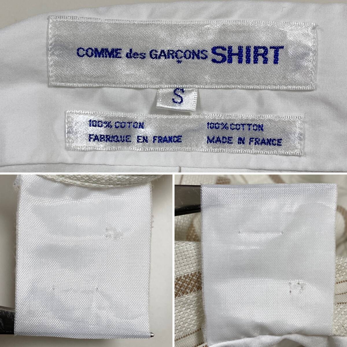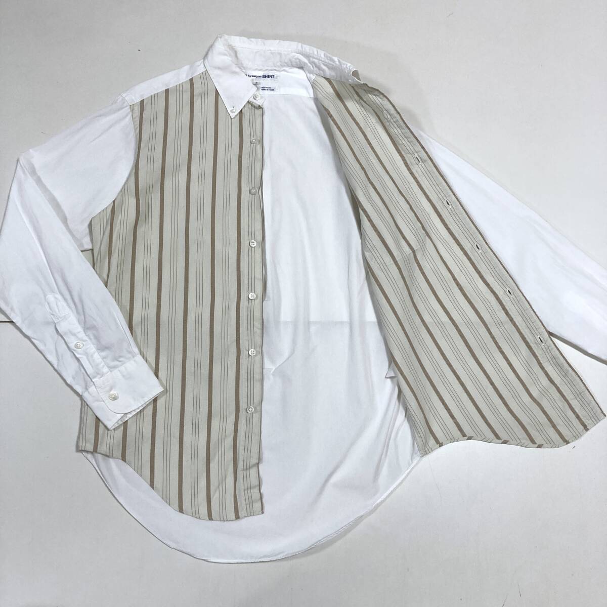 90s COMME des GARCONS SHIRT フロント切替 長袖 ボタンダウン シャツ ストライプ 白 コムデギャルソンシャツ VINTAGE archive 5080472
