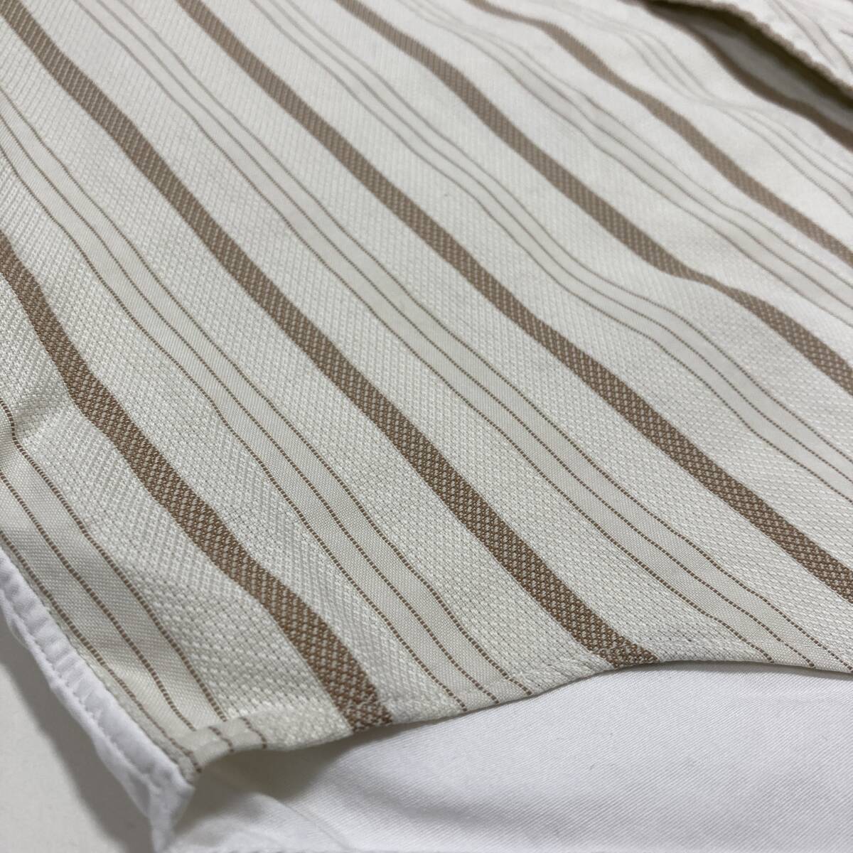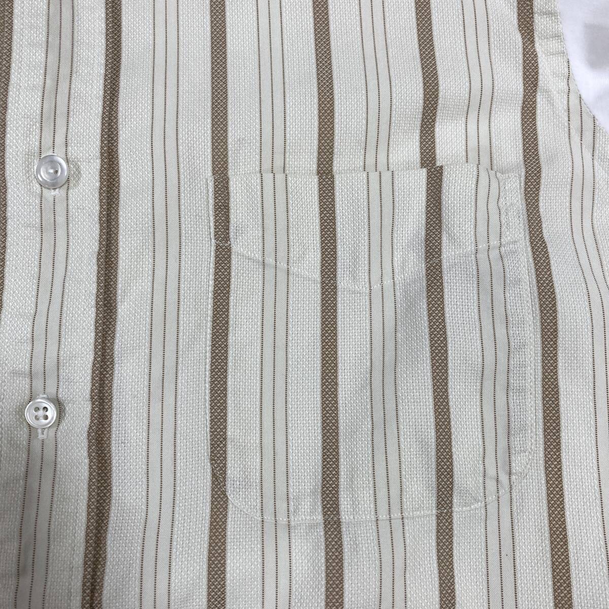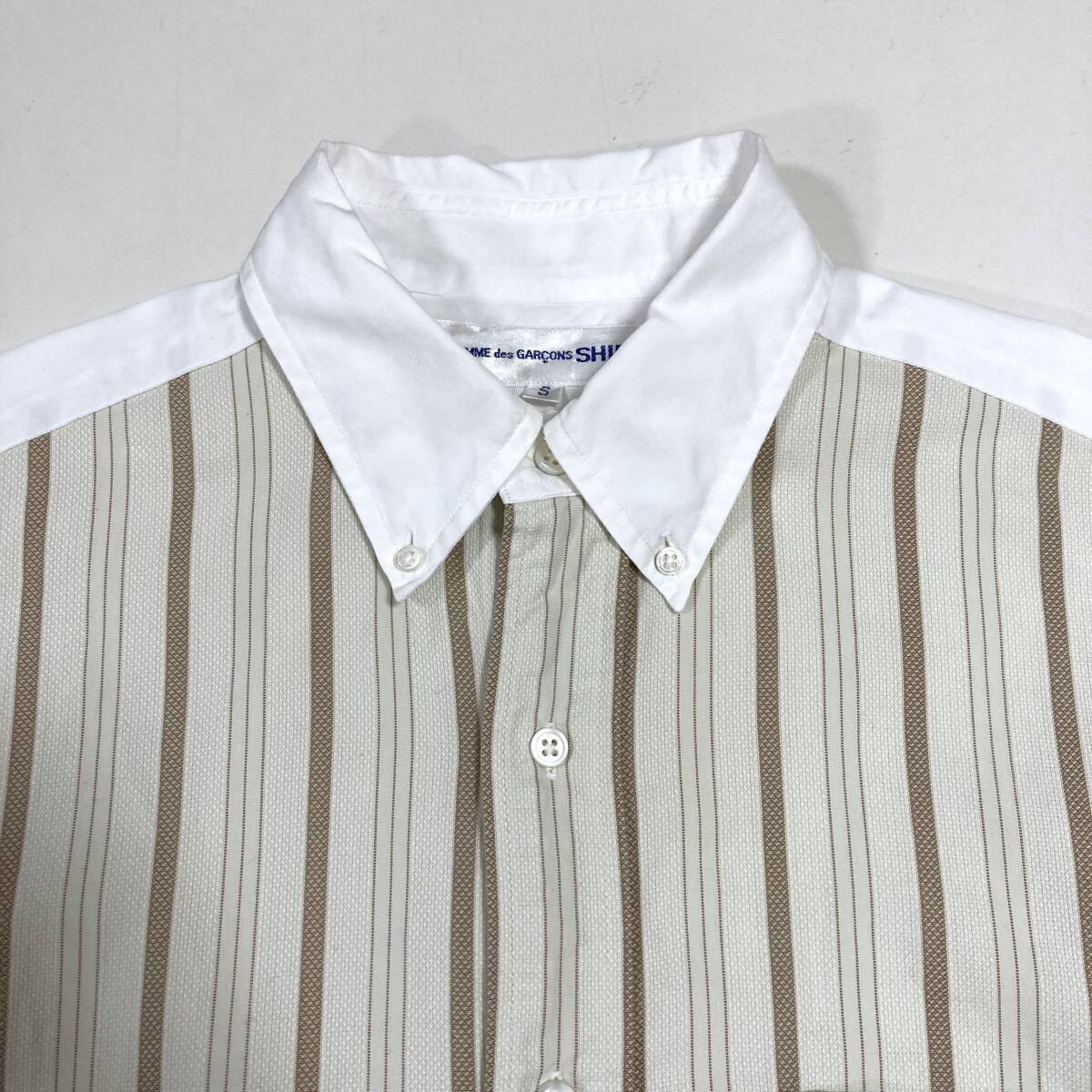 90s COMME des GARCONS SHIRT フロント切替 長袖 ボタンダウン シャツ ストライプ ベージュ × ホワイト