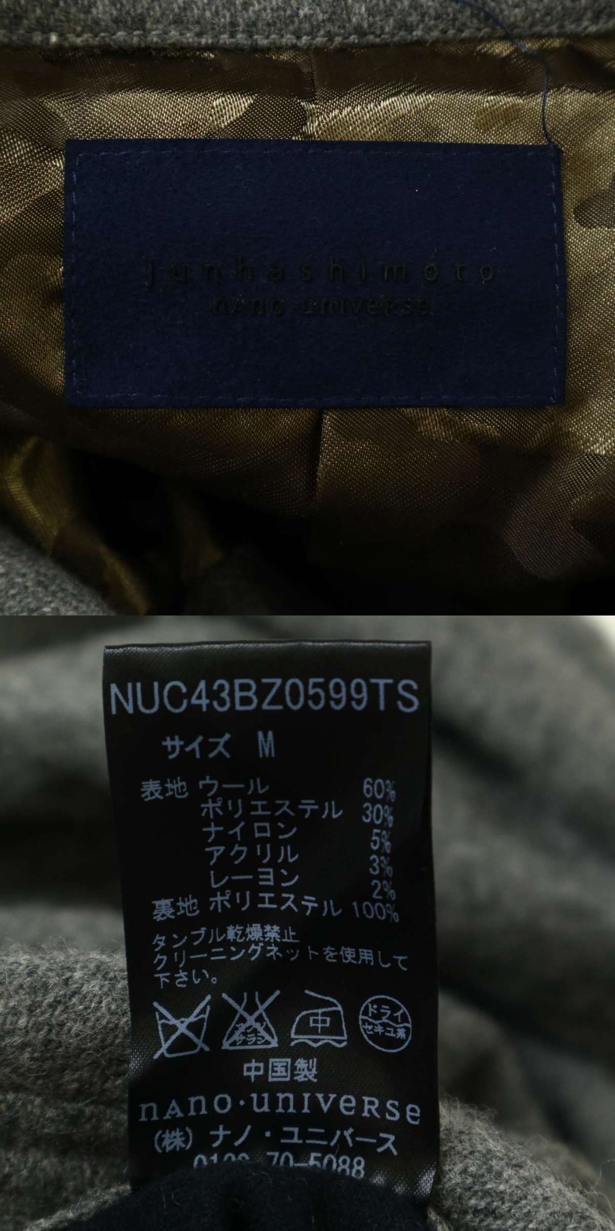junhashimoto× nano universe ジュンハシモト ナノユニバース ウール★ 長袖 CPO シャツ ジャケット Sz.M メンズ グレー