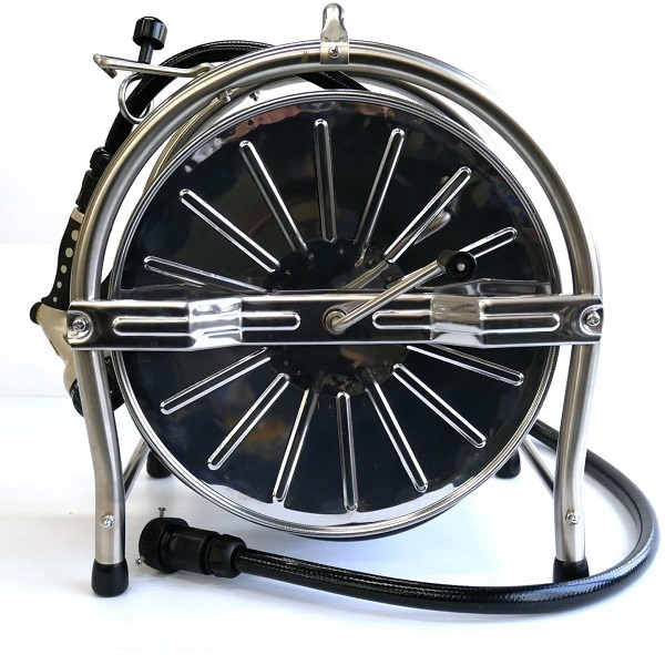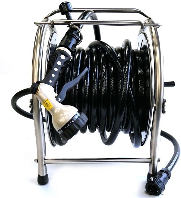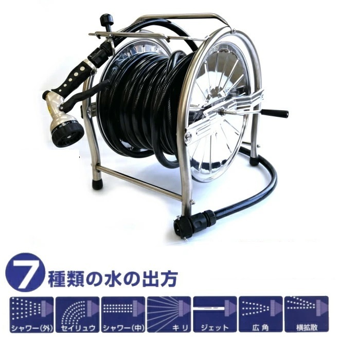 日之出化成 散水ホースリール 30m ステンレス製 ホースリール 散水ノズル付 散水ホース おしゃれ 防藻ホース 耐圧ホース 農業用ホース