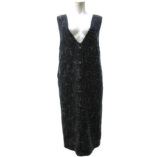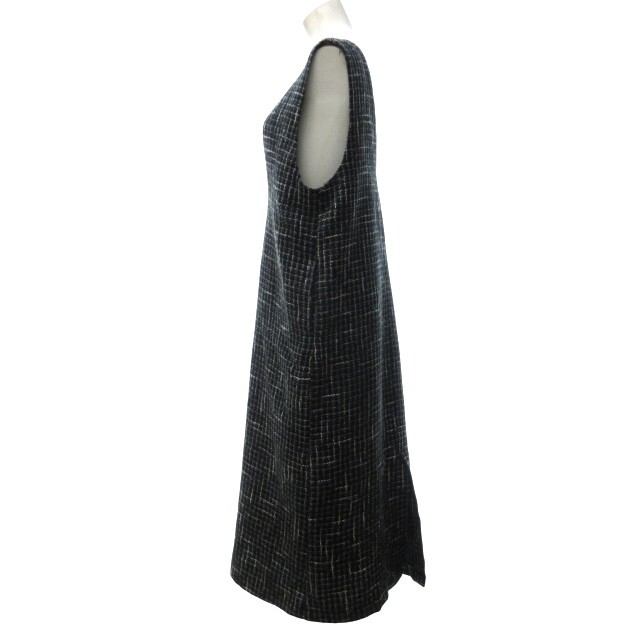 ノーリーズ Nolley's 美品 近年 ツイード ジャンパースカート ワンピース ノースリーブ ロング丈 黒 ブラック F IBO77