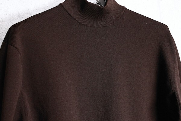 コムサ最高級ブランド、アルチザン(ARTISAN)のポリエステル糸ニット ハイネック プルオーバー 16ゲージ ニット。