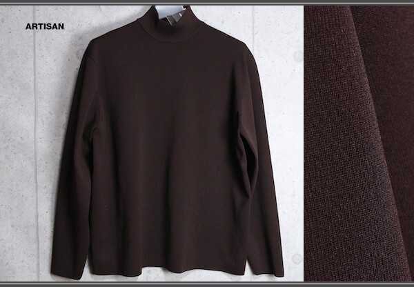 新品 アルチザン メン 秋冬 ポリエステル糸ニット ハイネック プルオーバー 16ゲージ ニット L/濃茶/定価2.8万/ARTISAN MEN/モックネック