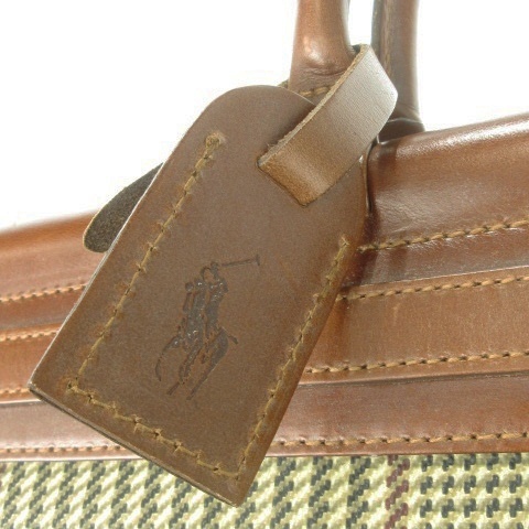 ポロ ラルフローレン POLO RALPH LAUREN ダレスバッグ ボストンバッグ PVC レザー 千鳥格子 チェック ロゴ 総柄 茶 ブラウン