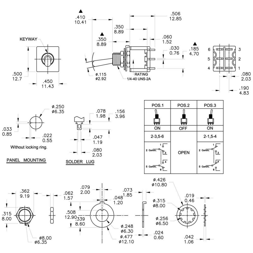 2回路2接点DPDT-6P ON-OFF-ONタイプ。