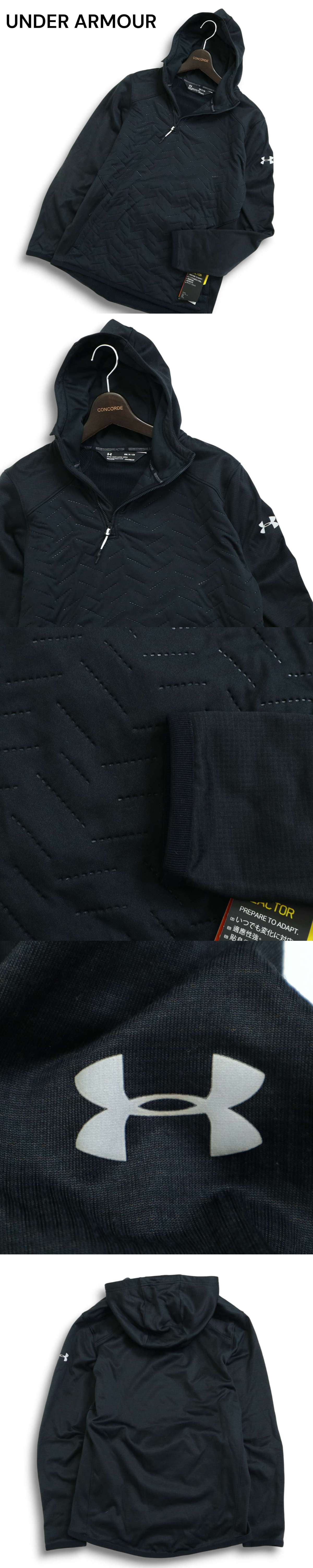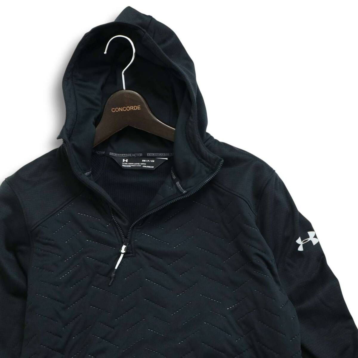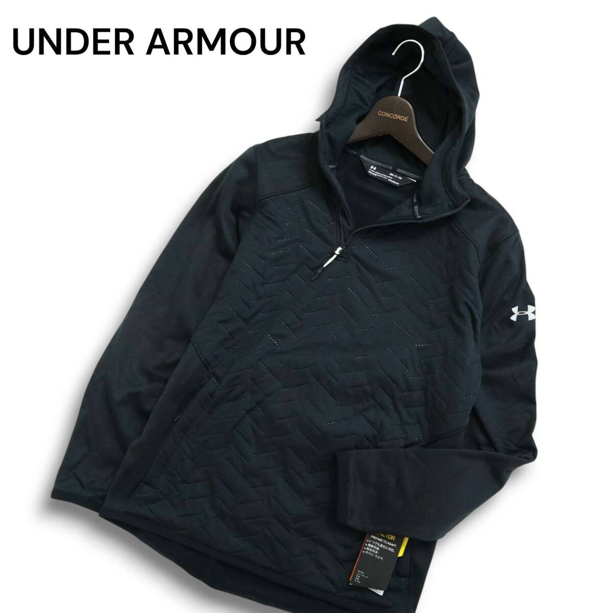 【新品 未使用】 UNDER ARMOUR アンダーアーマー coldgear 中綿 裏起毛★ フーディー ハーフジップ パーカー Sz.S メンズ 黒
