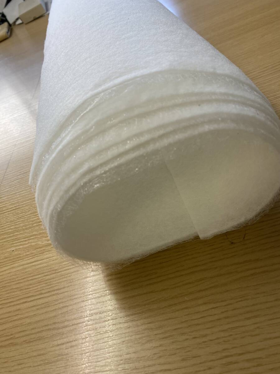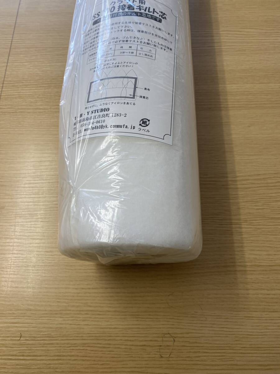 【商品説明】ポリエステル100%素材のタイプは少しハリ腰の有るキルト綿にクモの巣両面接着シートを片面全体に張り合わせた接着キルト綿です、薄い生地などにもきれいに貼ることができます、帽子のパーツ芯・カルトナージュ等の箱作り又パッチワークの素材としてご利用できます。【素材】ポリエステル【サイズ】綿の厚みは約1.5mm、綿の幅は100cm
