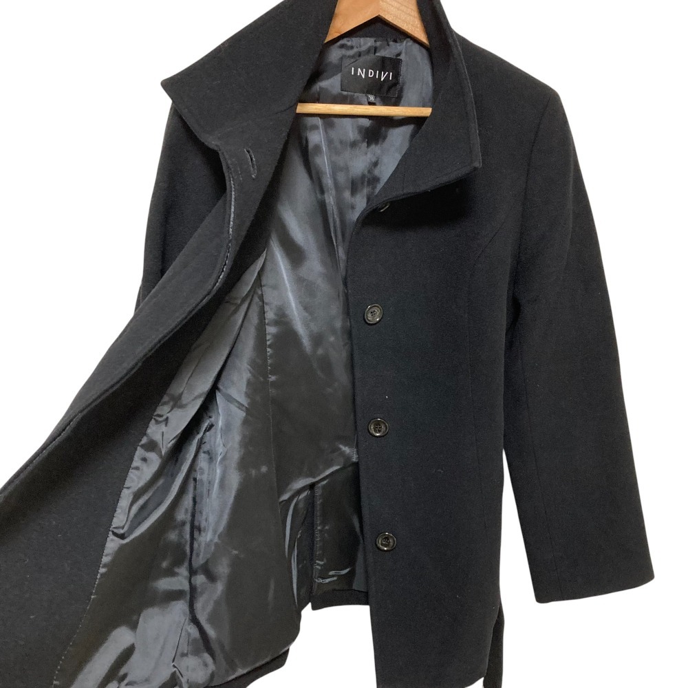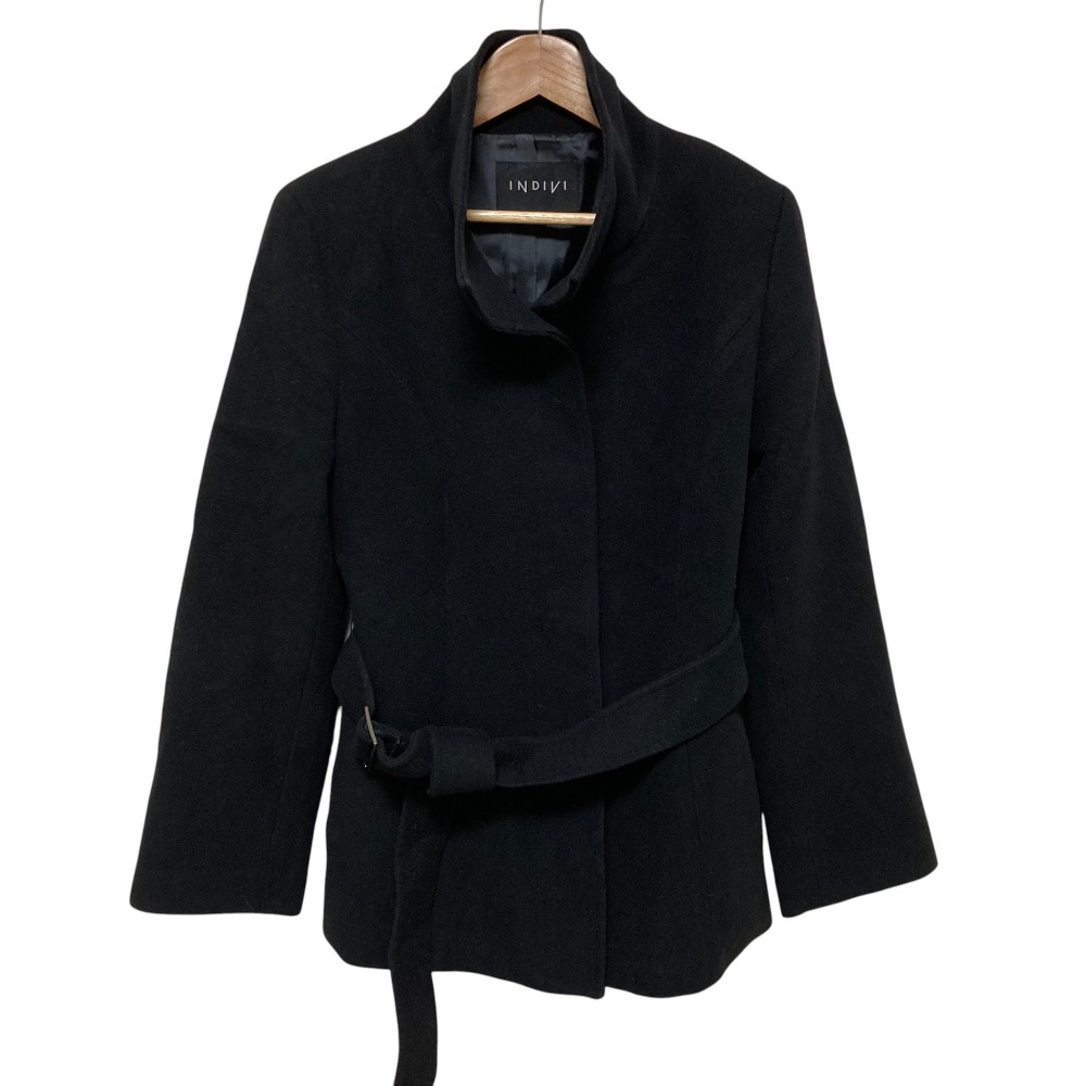 美品 INDIVI インディヴィ カシミヤブレンド ショートコート サイズ38 ブラック