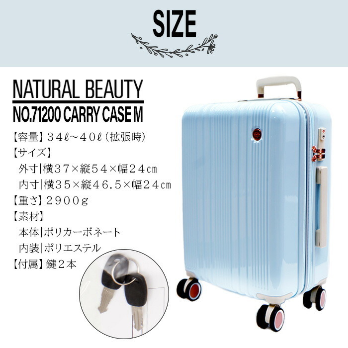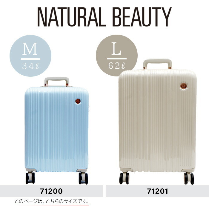 商品名 | 71200【05.ブルー】スーツケース 機内持ち込み 34-40L [NATURAL BEAUTY] [ナチュラルビューティー] |