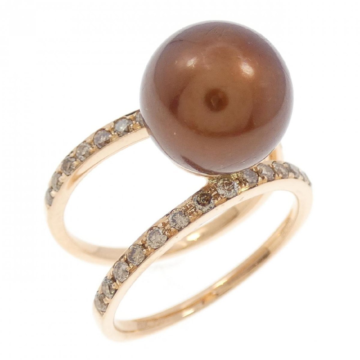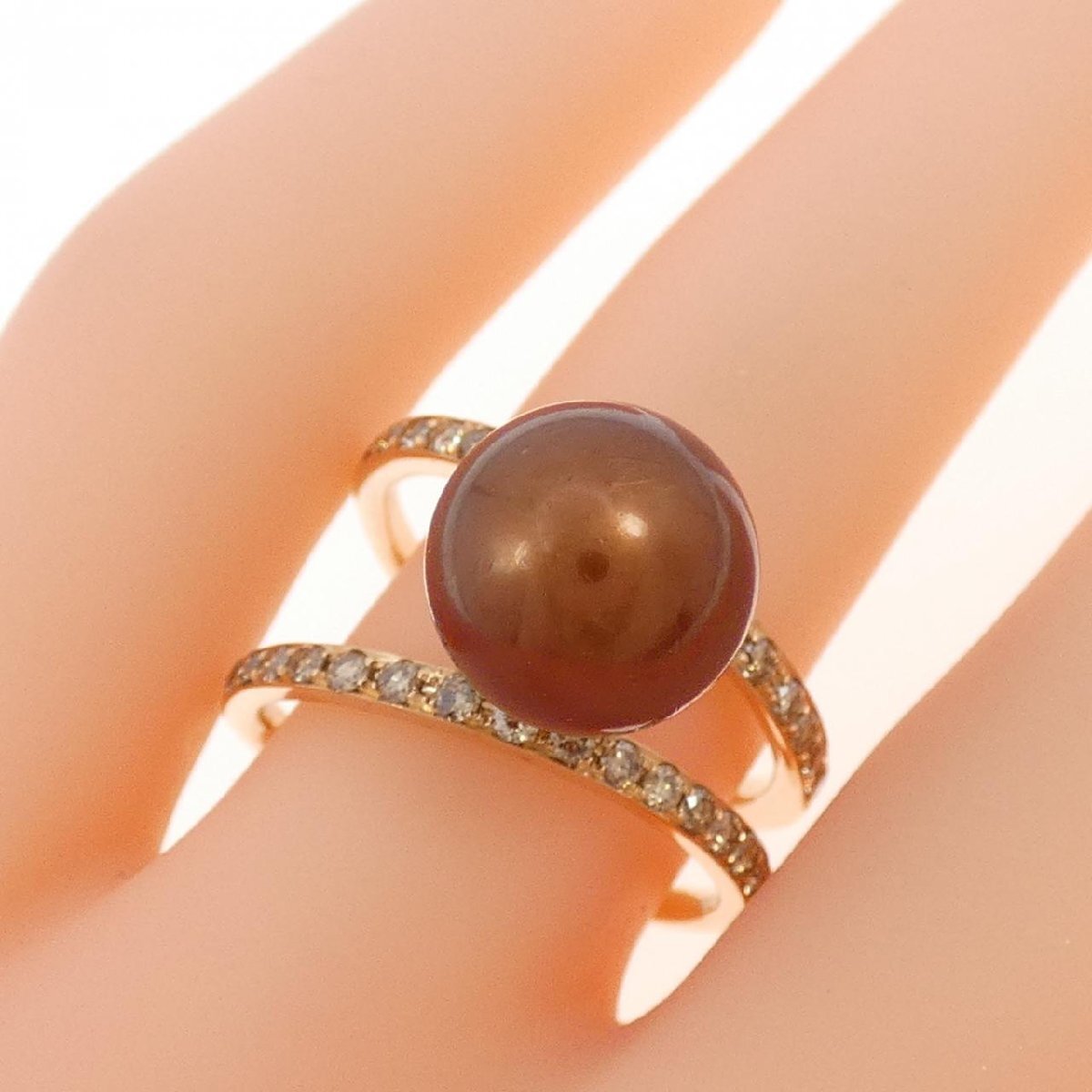 メタリックブラウンの黒蝶パールがアクセントになったリング。ピンクゴールドが肌に馴染む品の良いジュエリーです。