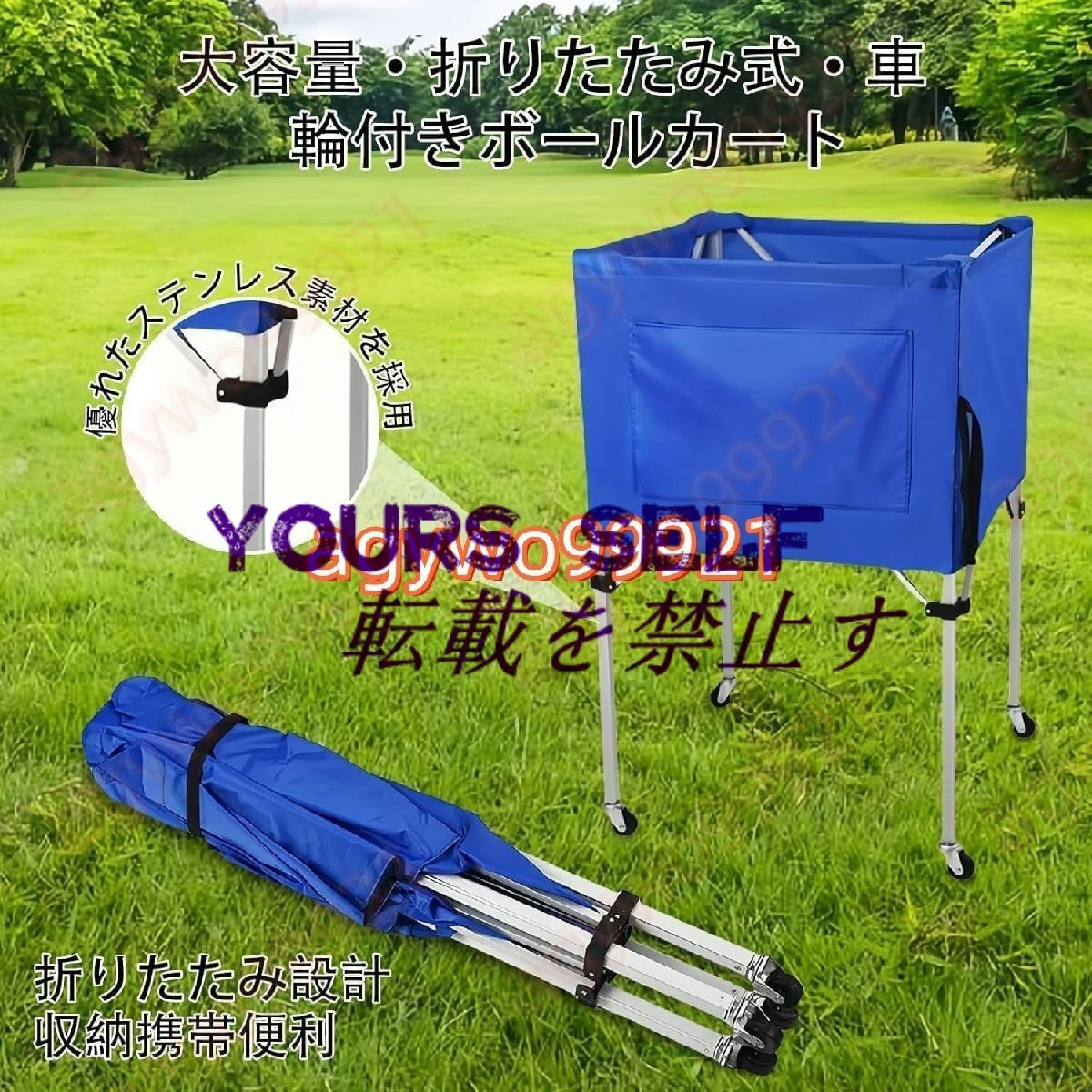 キャスター付き ボールかご 折り畳み ボール収納カート 練習用 ボール収納カゴ 軽量 大容量 野球、ソフトボール、テニス、バドミントン、卓球などのボール対応 収納袋付き blue