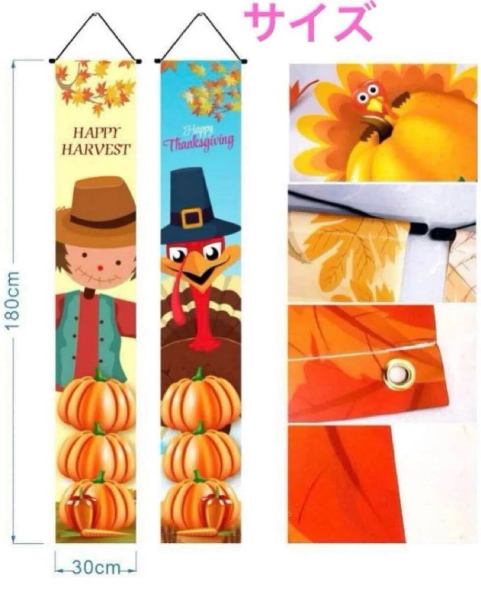 もう片方には、同じく秋らしいオレンジ色の文字で「Welcome」の文字と、積み重ねられた様々な色合いのカボチャのイラストが描かれています。訪れる人を温かく迎え入れ、お家の顔である玄関を、一気に秋の装いに変えてくれます。