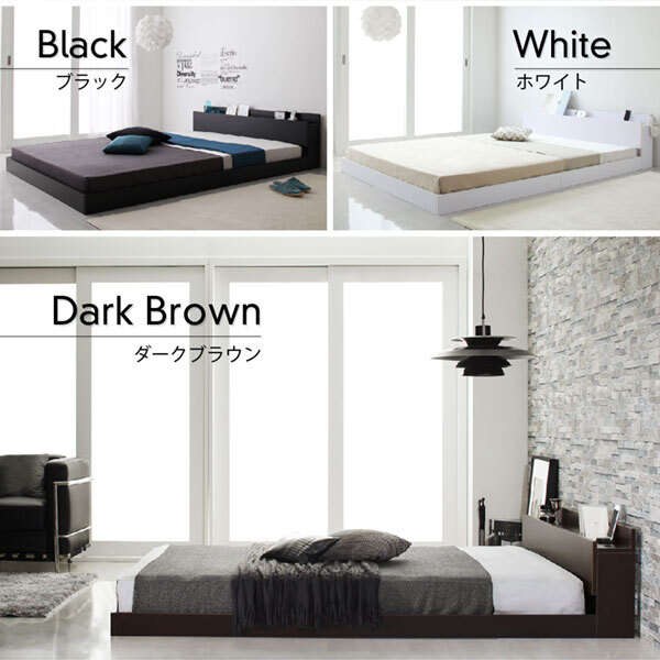 棚・コンセント付きフロアベッド Elthman エルスマン スタンダードポケットコイルマットレス付き ダブル【フレームカラー:ブラック】【寝具カラー:ホワイト】です。