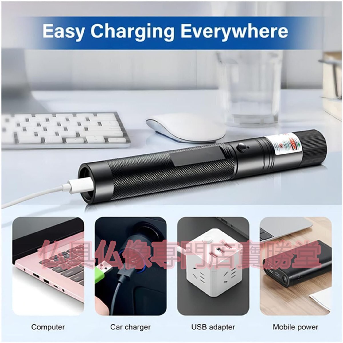 【寶勝堂】軽量LEDライトレーザー懐中電灯 USB-C充電 防水 アルミ合金製 グリーンレーザー 登山/キャンプ 方向指示器 強力軽量LEDライトレ