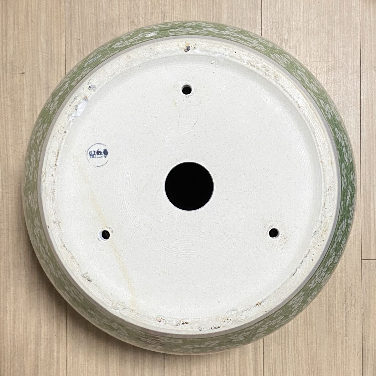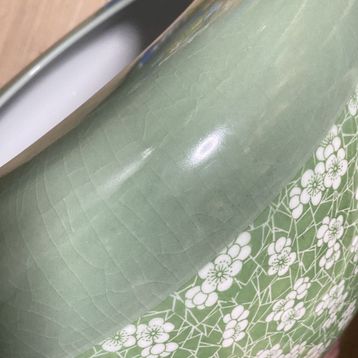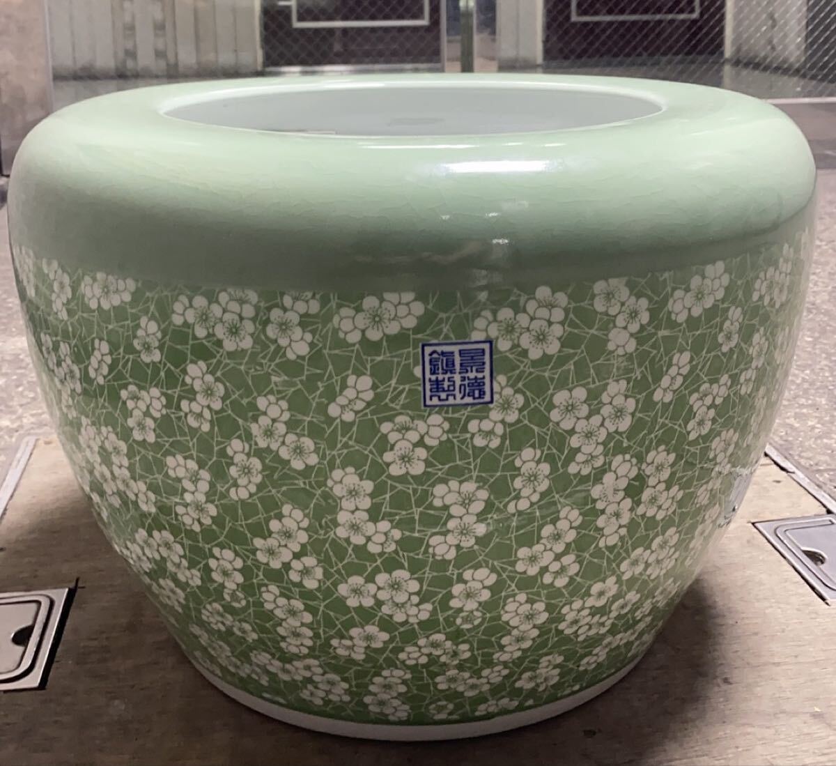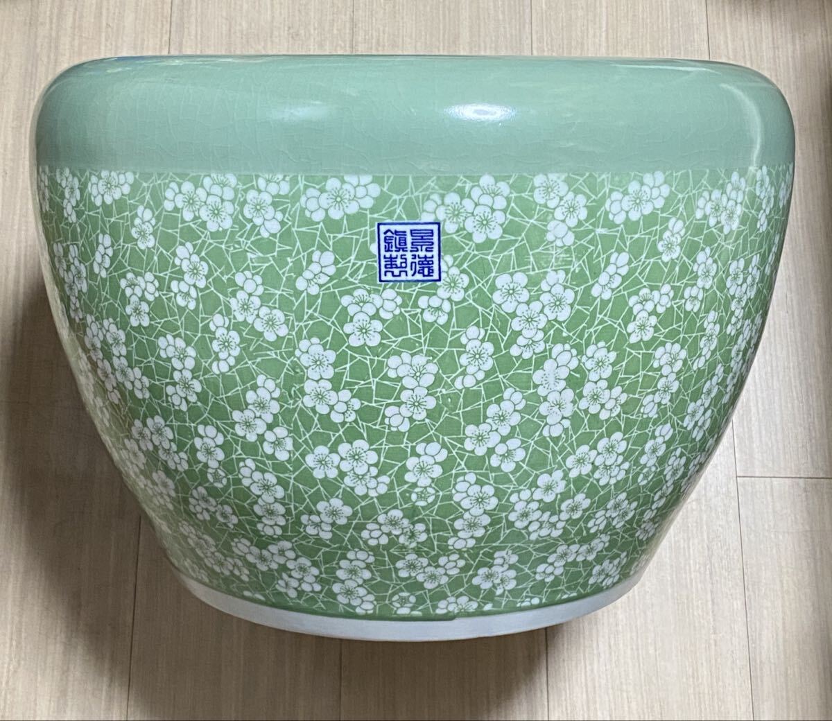 古美術 青磁風 緑釉 梅花文様 鎮窯銘 大型陶磁器 骨董品 古玩 中国美術 花器 置物 和室 洋室装飾 和モダン