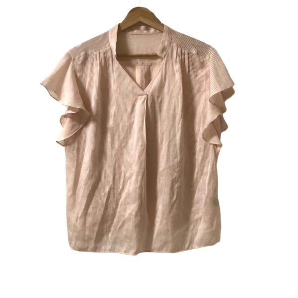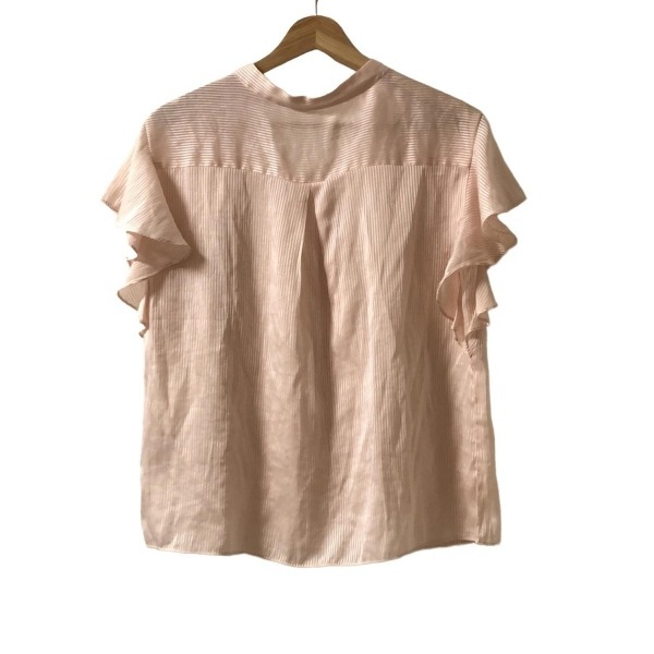 ピンキー&ダイアン Pinky&Dianne 半袖カットソー サイズ38 M - ライトピンク×白 レディース ストライプ/フリル/シースルー 美品 トップス
