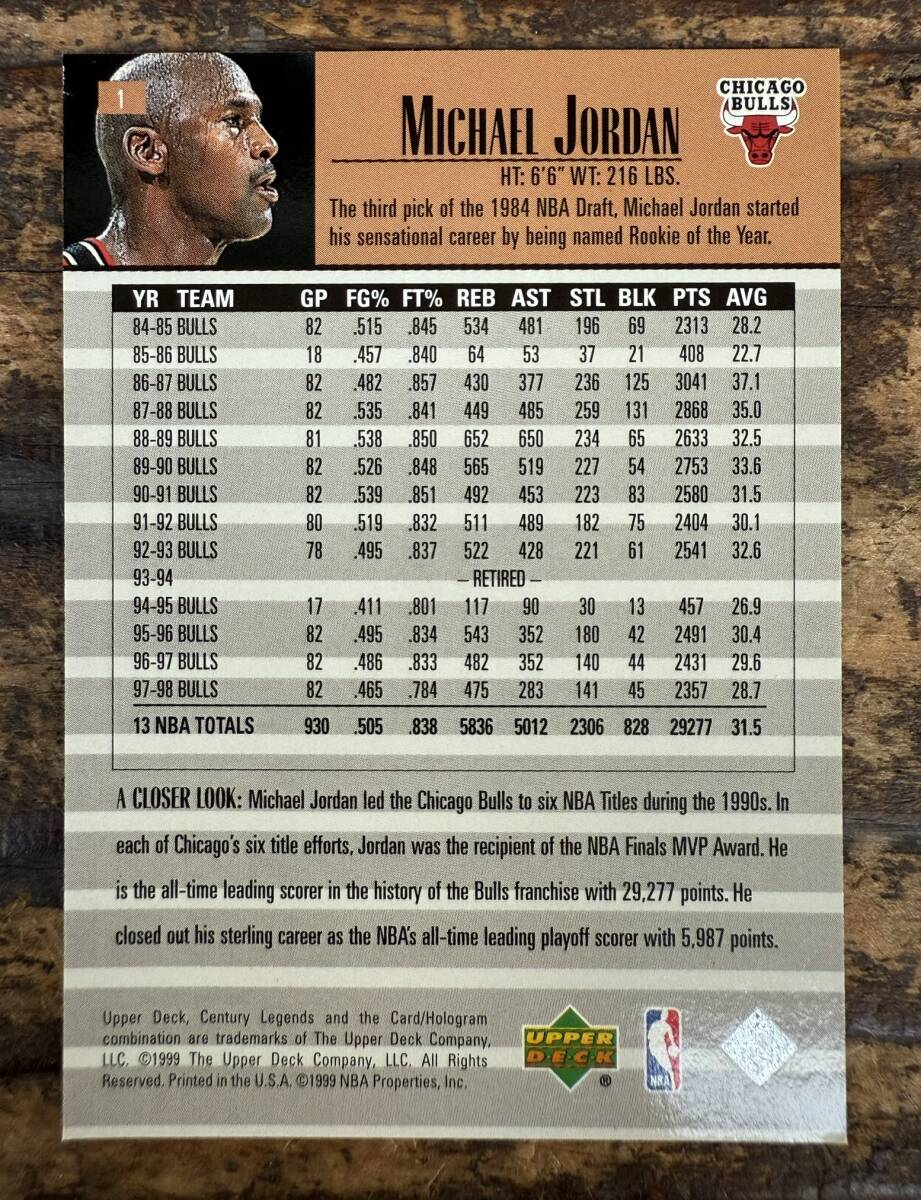 ★1999★UPPER DECK★CENTURY LEGENDS★MICHAEL JORDAN★CHICAGO BULLS★マイケルジョーダン★ブルズ★#1★NBA★バスケ★トレカ★