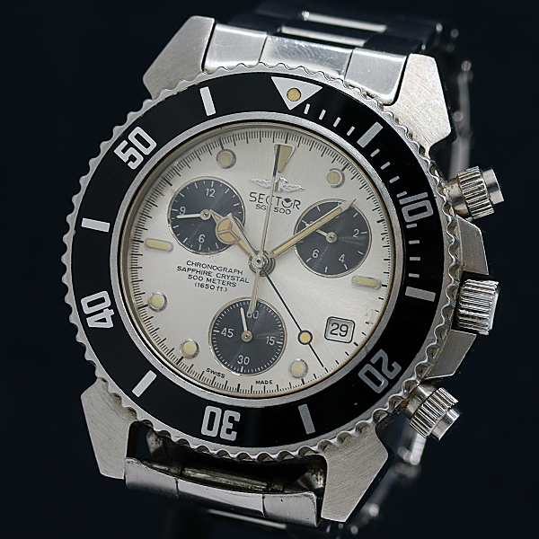 1円 稼働 セクター ダイバー SGE-500 QZ クロノグラフ デイト シルバー文字盤 メンズ腕時計 2236000 8BJY KTS