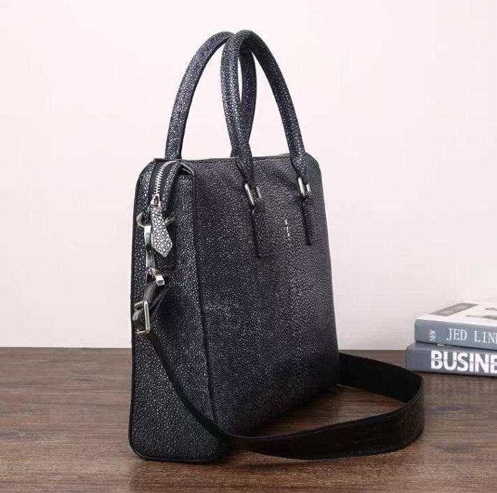 エイ革 スティングレー ガルーシャ 大容量 ビジネスバッグ メンズ ショルダーバッグ 書類バッグ A4/PC対応 ブリーフケース