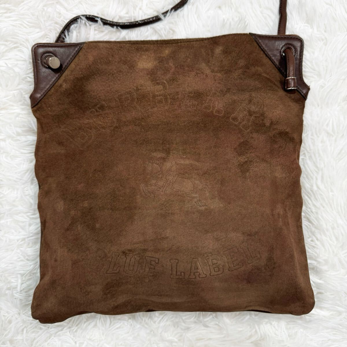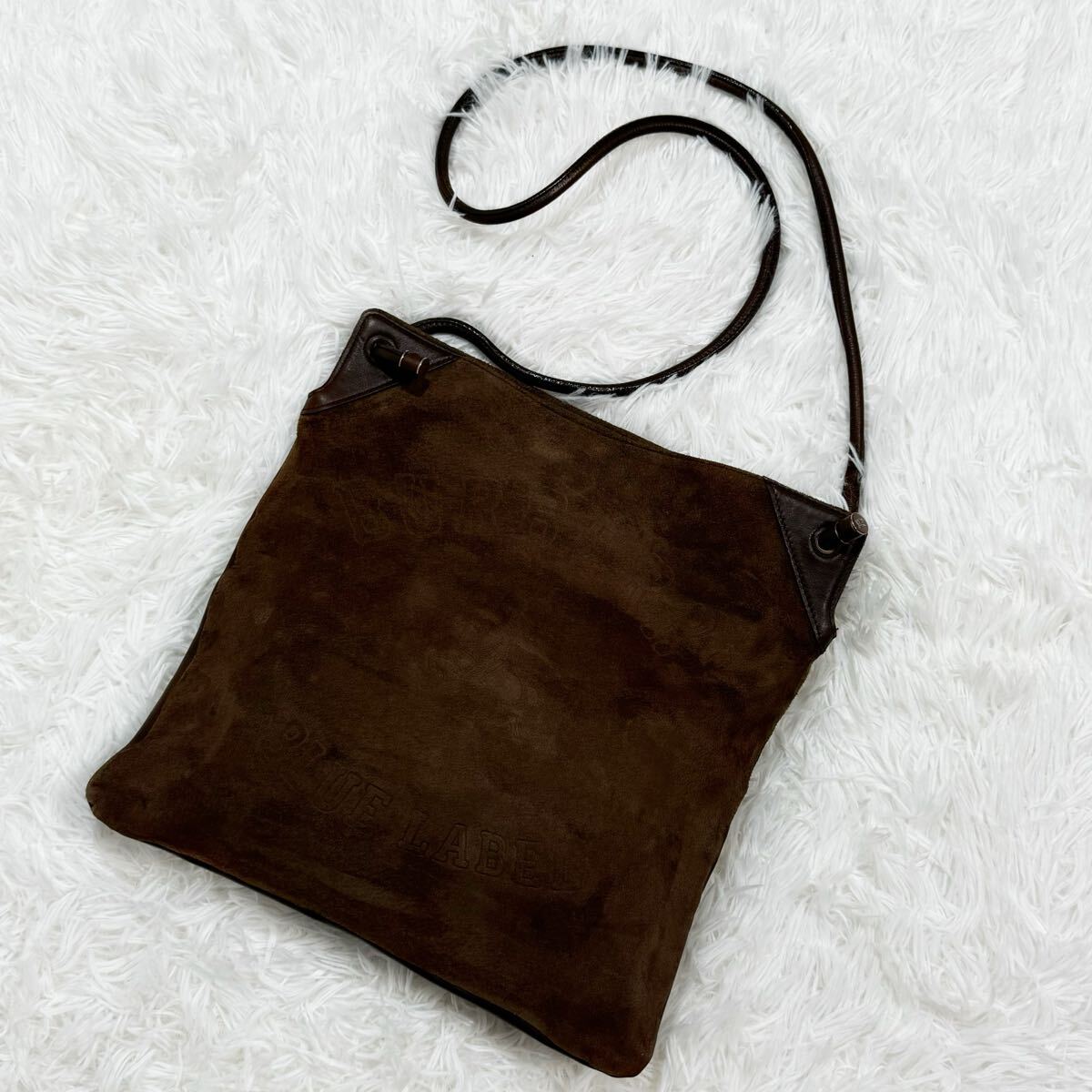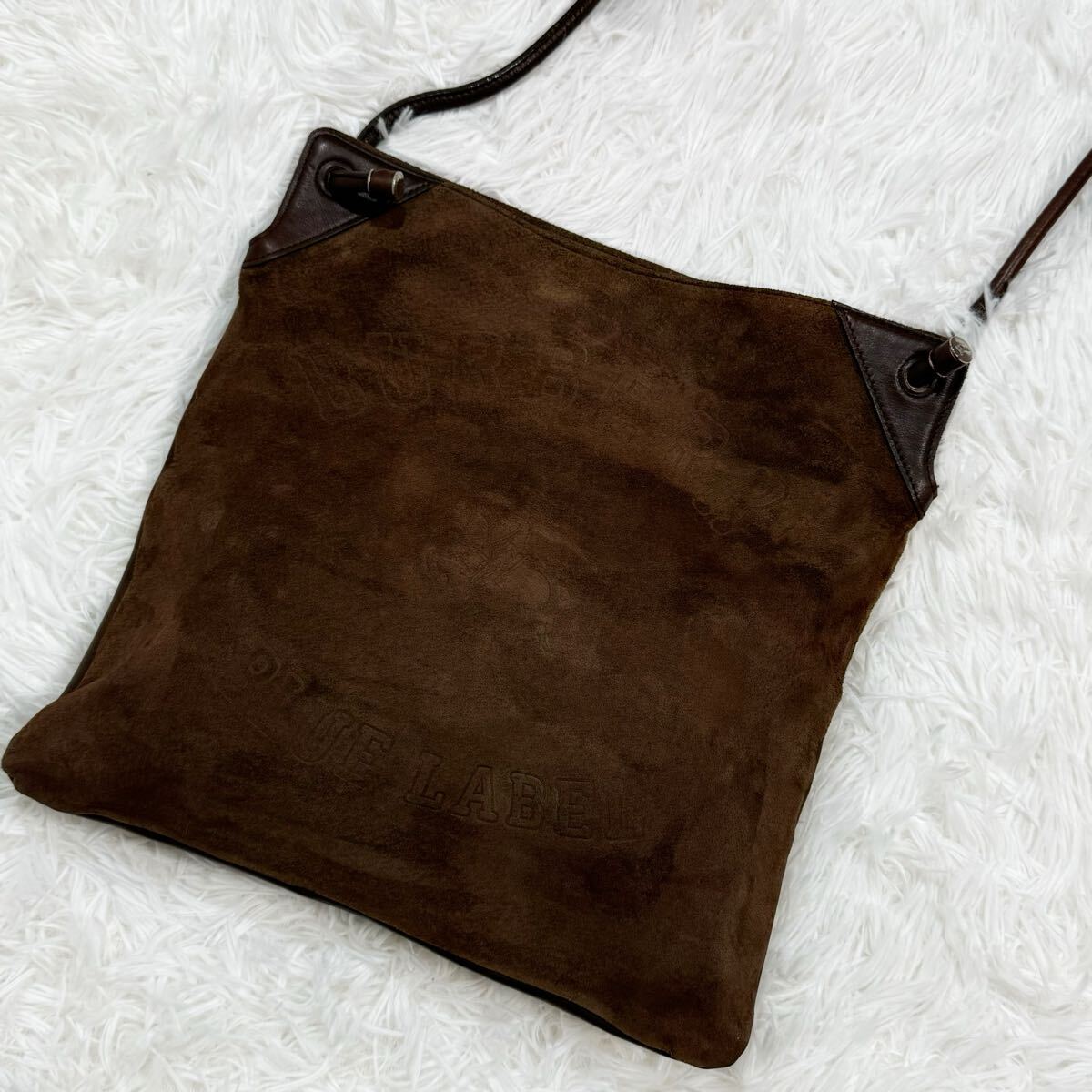 美品!BURBERRY バーバリー ブルーレーベル ロゴ型押し ショルダーバッグ 斜めがけ スウェード レザー ブラウン系
