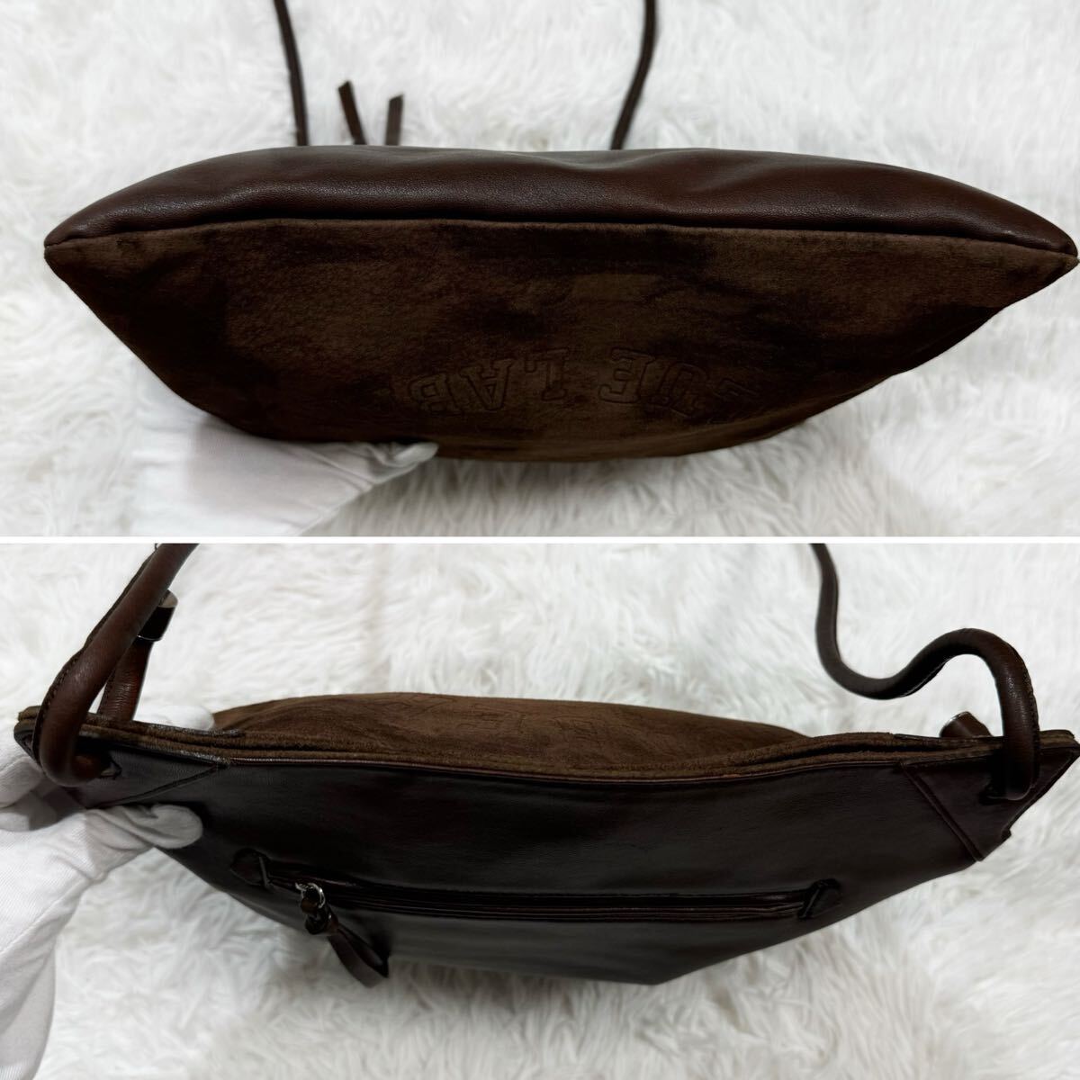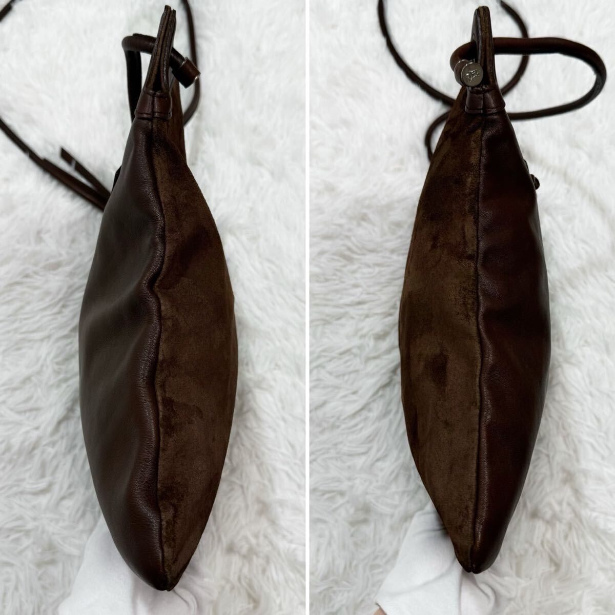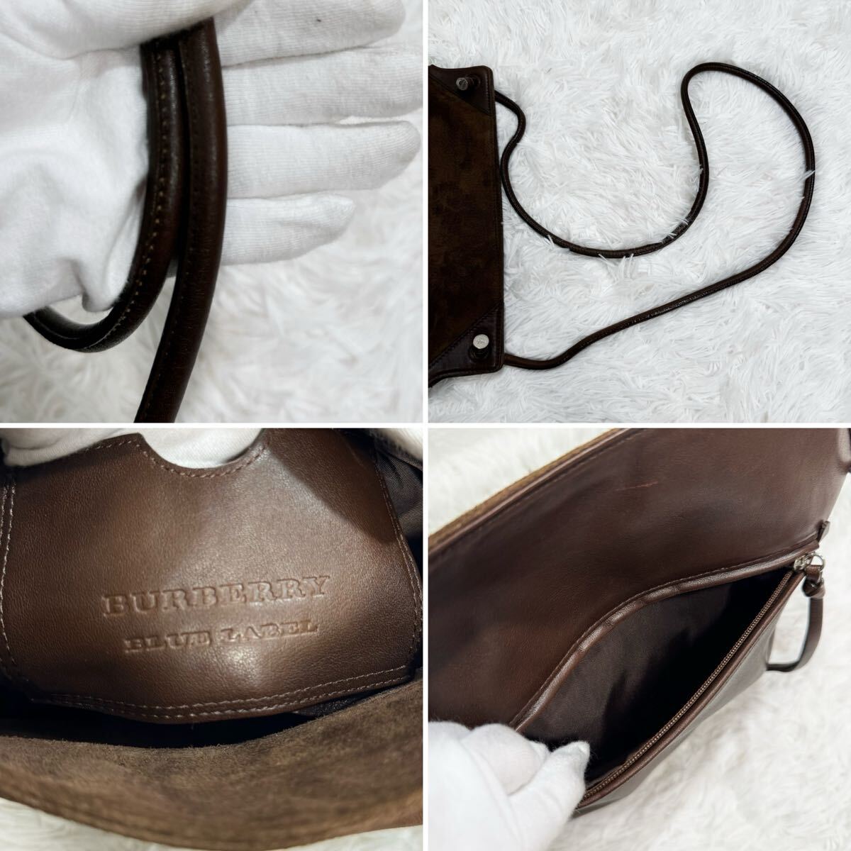 美品!BURBERRY バーバリー ブルーレーベル ロゴ型押し ショルダーバッグ 斜めがけ スウェード レザー ブラウン系