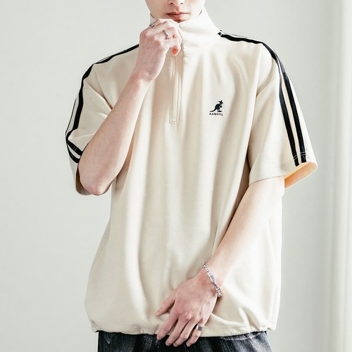 ●送料390円可能商品 カンゴール KANGOL 新品 メンズ オーバーサイズ スエード ハーフジップ 半袖 シャツ [14362381N-L] 一 三 弐★QWER