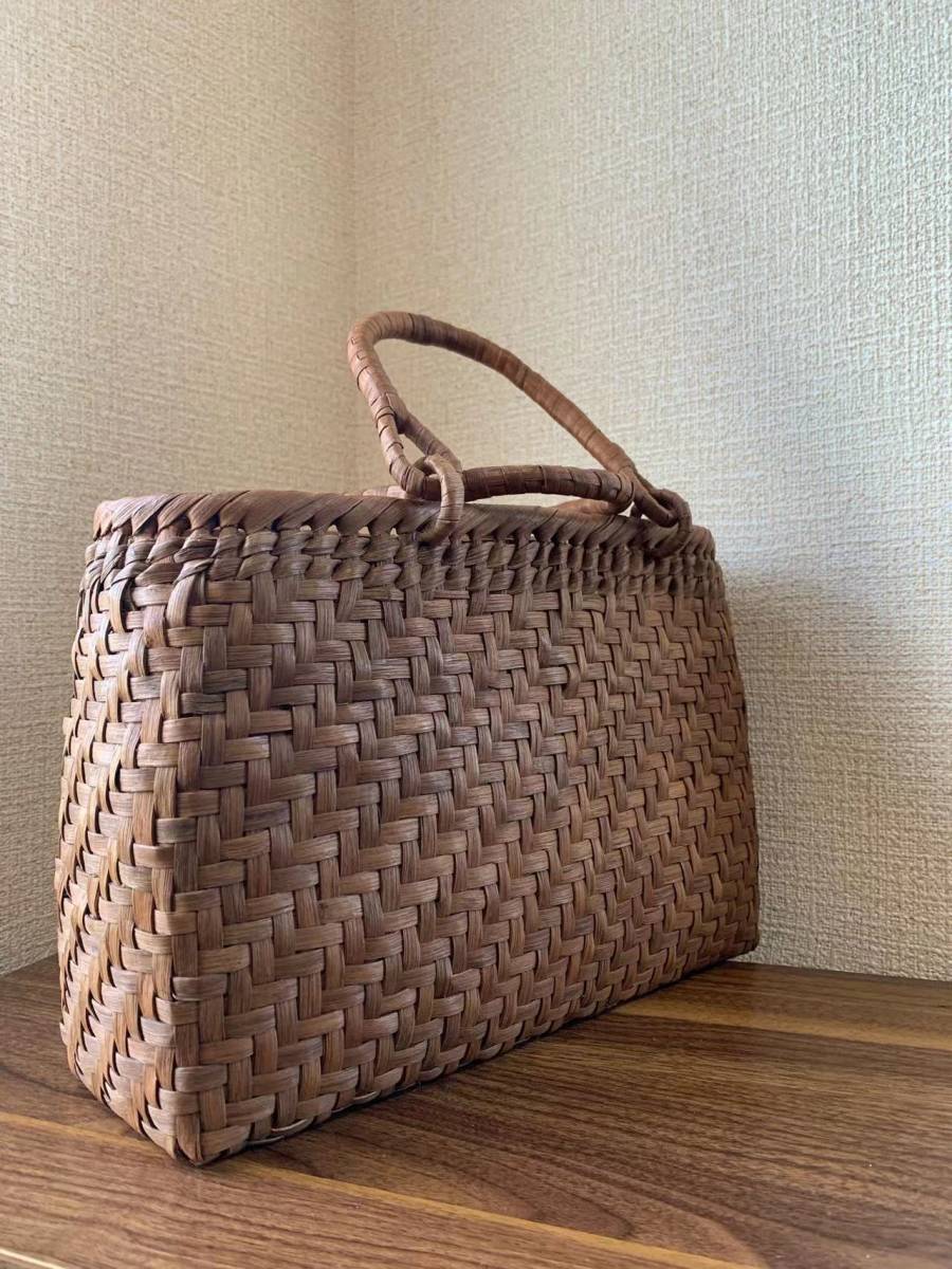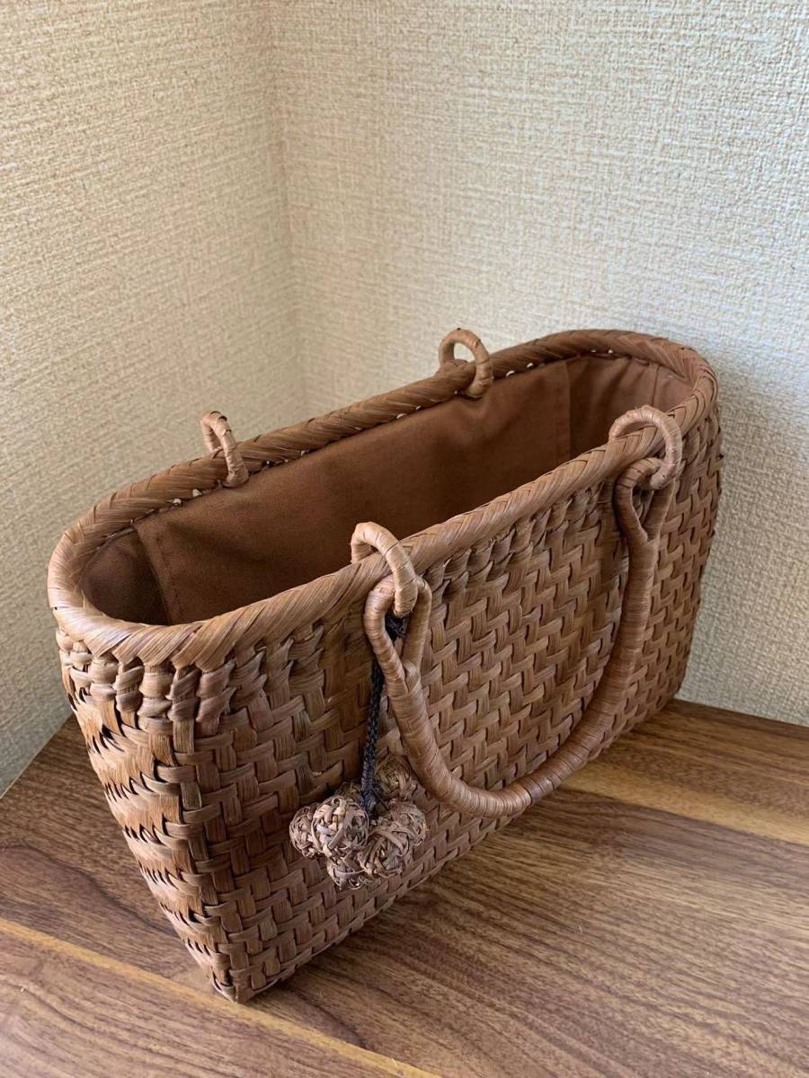 山葡萄かごバッグ 手作り 籠バッグ 網代編み チャーム付き