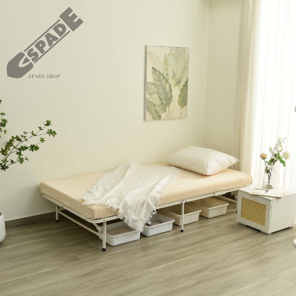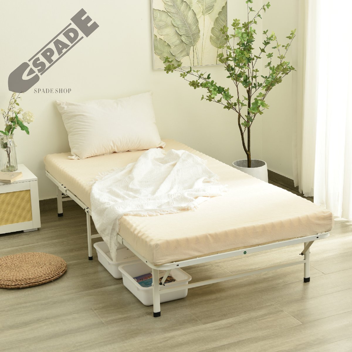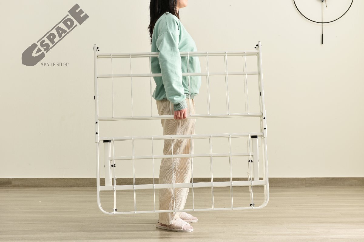 • 【折りたたみ式で省スペース】 折りたためるから、使わいない時は場所をとらず簡単に収納できます。来客用ベッドとして、リビングに置くにもぴったり。 【組立簡単】 使う時は広げてストッパーを付けるだけで設置完了、とても使いやすいです。*注意、ベッドを使う時は安全のため必ずロックをかけてください。