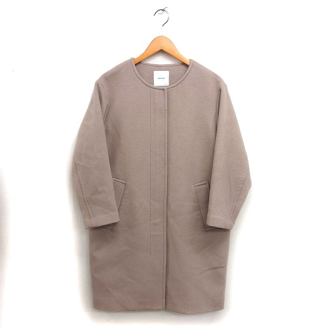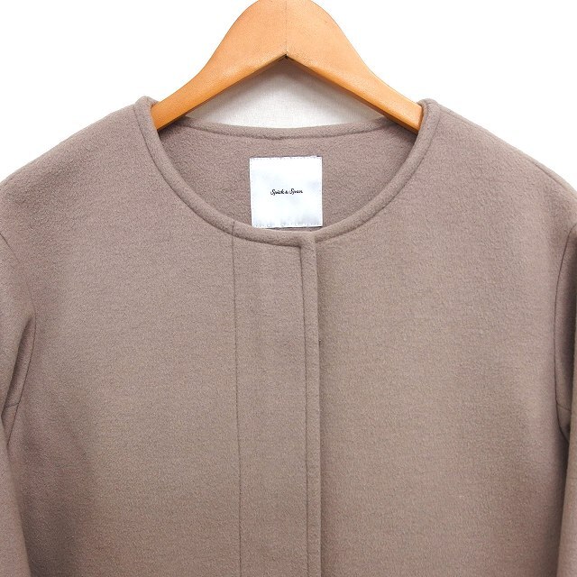 スピック&スパン Spick&Span ノーカラー コート アウター ロング ウール混 ジップアップ S34 グレージュ /NT32 レディース