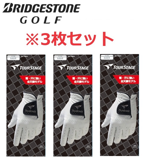 ブリヂストンゴルフ 25cm ホワイト 3枚 ツアーステージ 全天候グローブ GLTS24