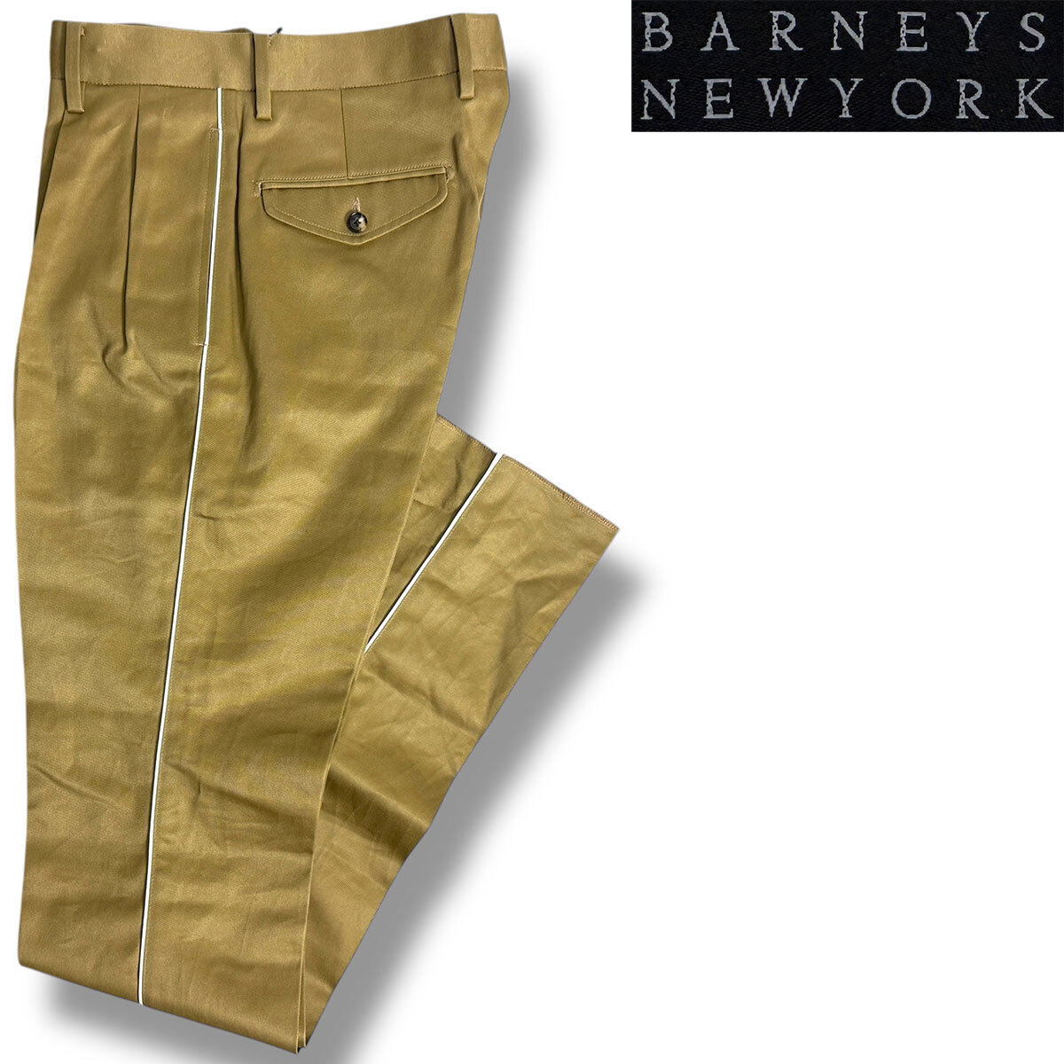 J3572 新品 バーニーズニューヨーク 2プリーツ サイドパイピング コットンパンツ ベージュ 46 BARNEYS NEWYORK