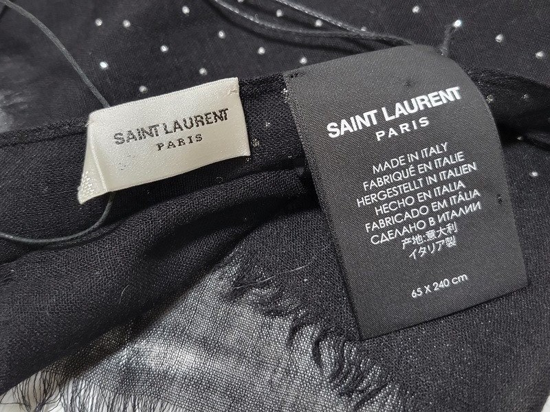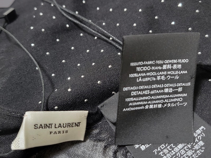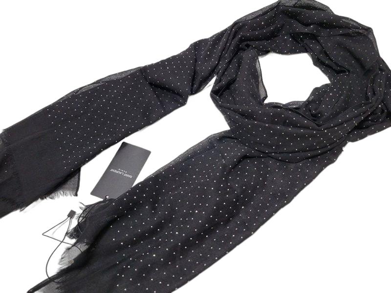 14万 新品本物 サン ローラン SAINT LAURENT シルバートーンメタル ストール大判マフラー スカーフ 黒 スーツ ジャケット コートスタイルに