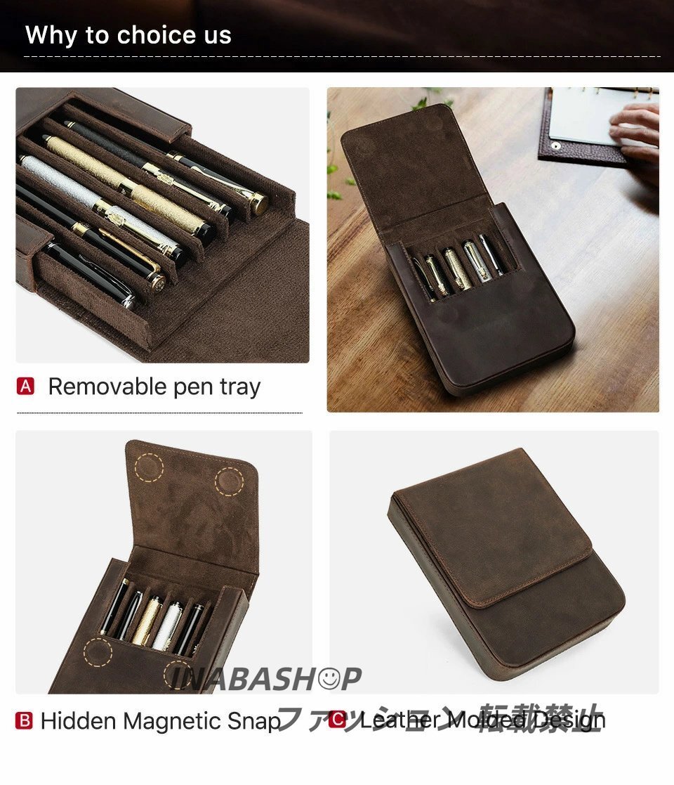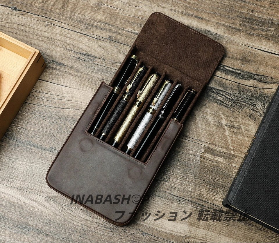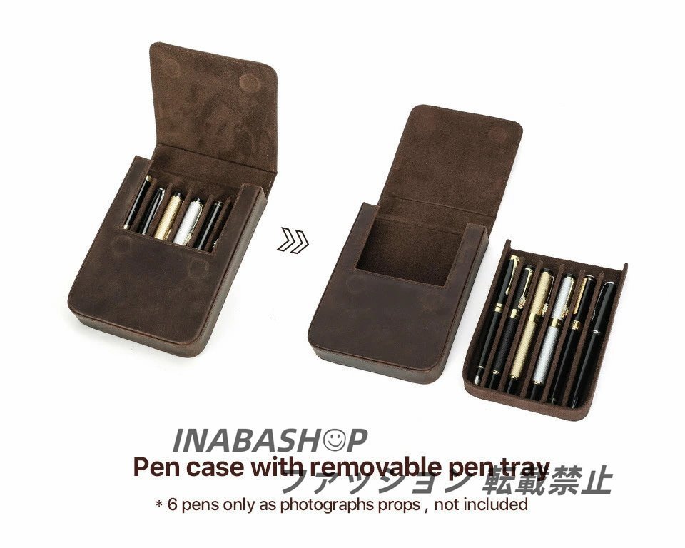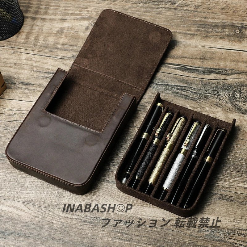 本革万年筆 ペンケース6本差し ペン本シンプル おしゃれ コンパクト 軽い 小さめスリム 筆箱 ふで箱 革小物 文房具 収納 牛革贈り物 父の日