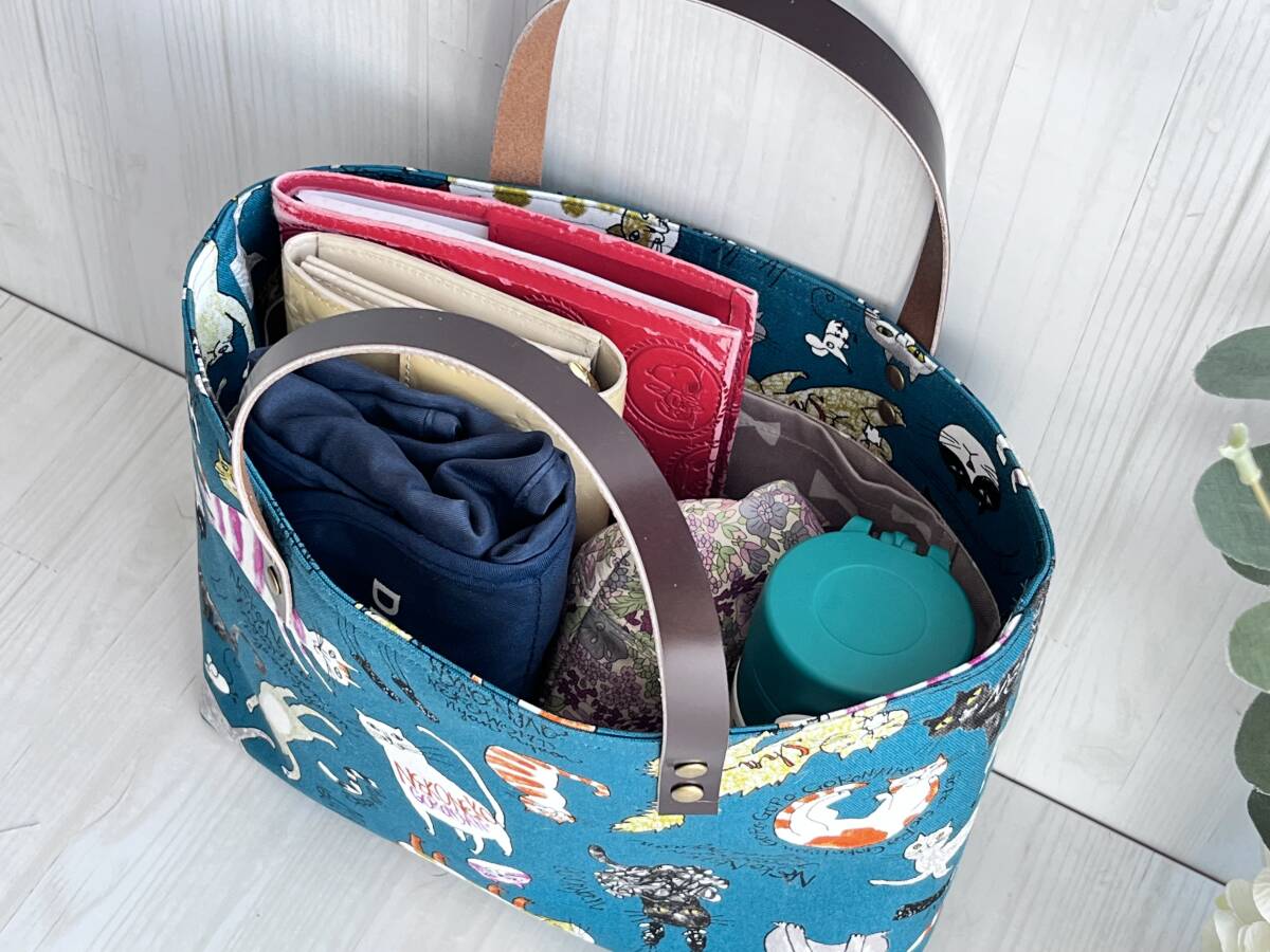 マチを8cmとってありますので、見た目よりもたくさん入りますよ。