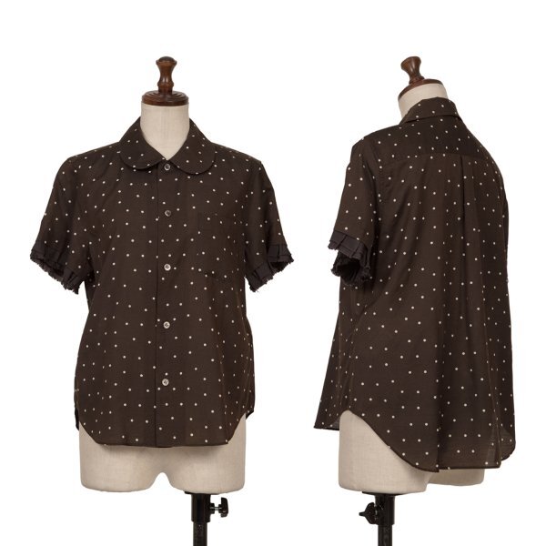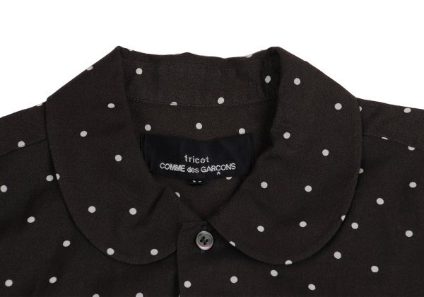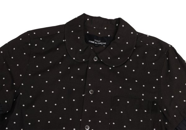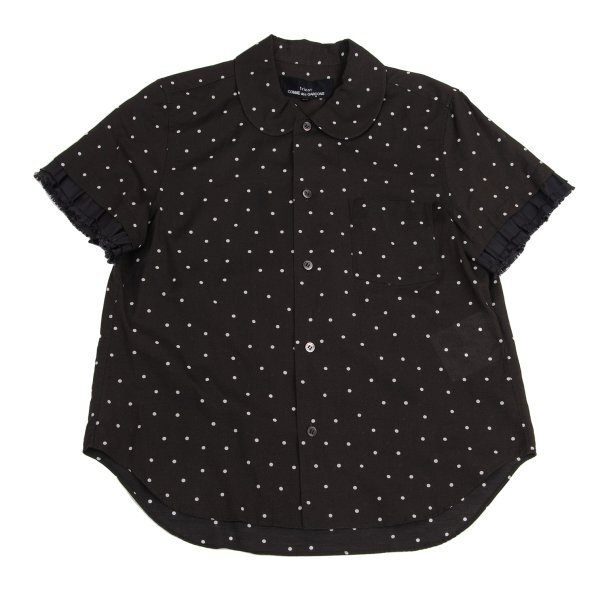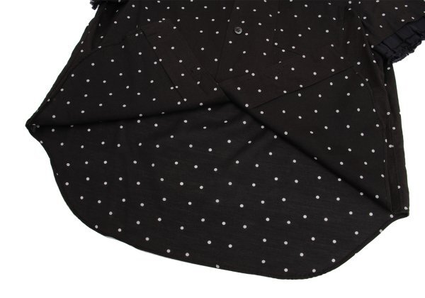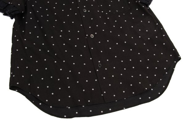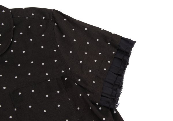 | トリココムデギャルソンtricot COMME des GARCONS フリル袖切替コットンドット半袖ブラウス 黒オフM |