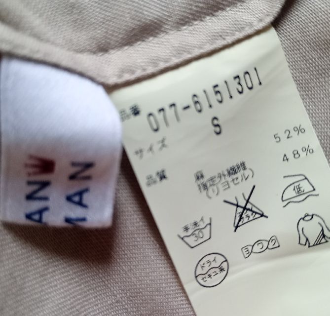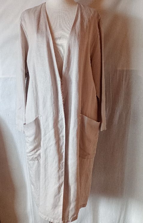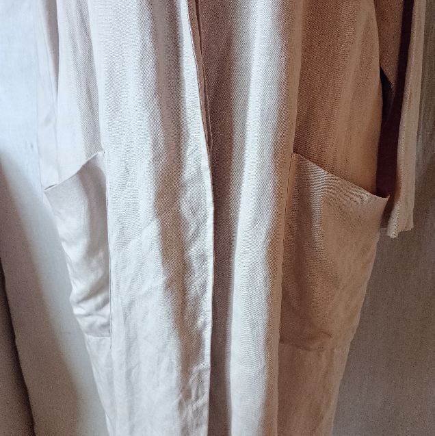 HUMAN WOMAN ヒューマンウーマン 麻×リヨセル 春秋 ロングコート Sサイズ 羽織り ベージュ ノーカラー