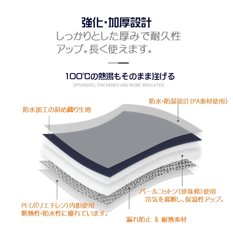 100度迄の耐熱構造なので、熱湯を入れても安心。