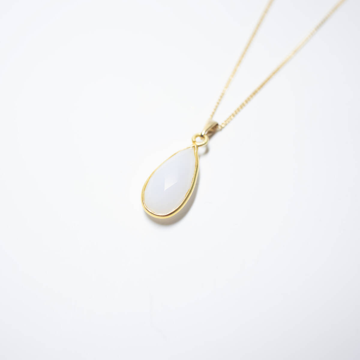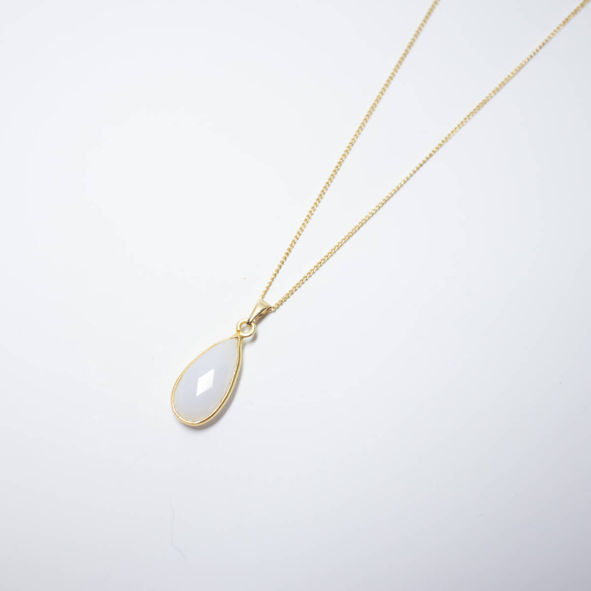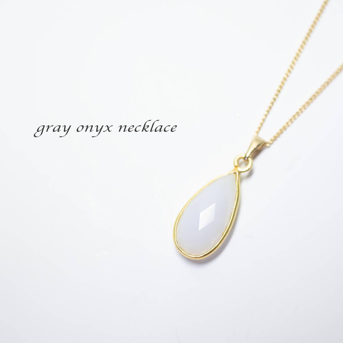 柔らかな乳白色グレーが上品に輝く、インド産グレーオニキス(ナチュラルアゲート)のネックレスです。