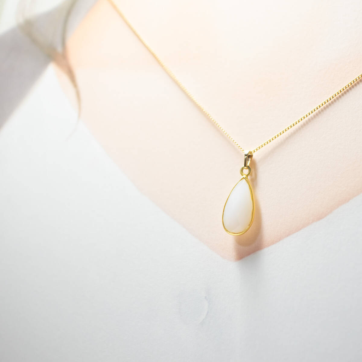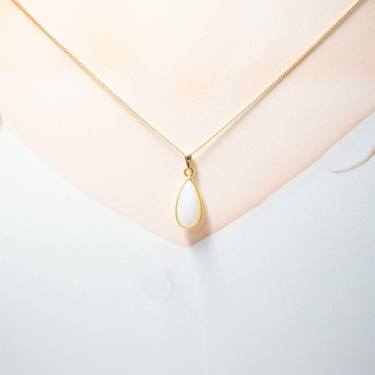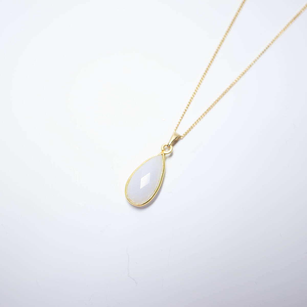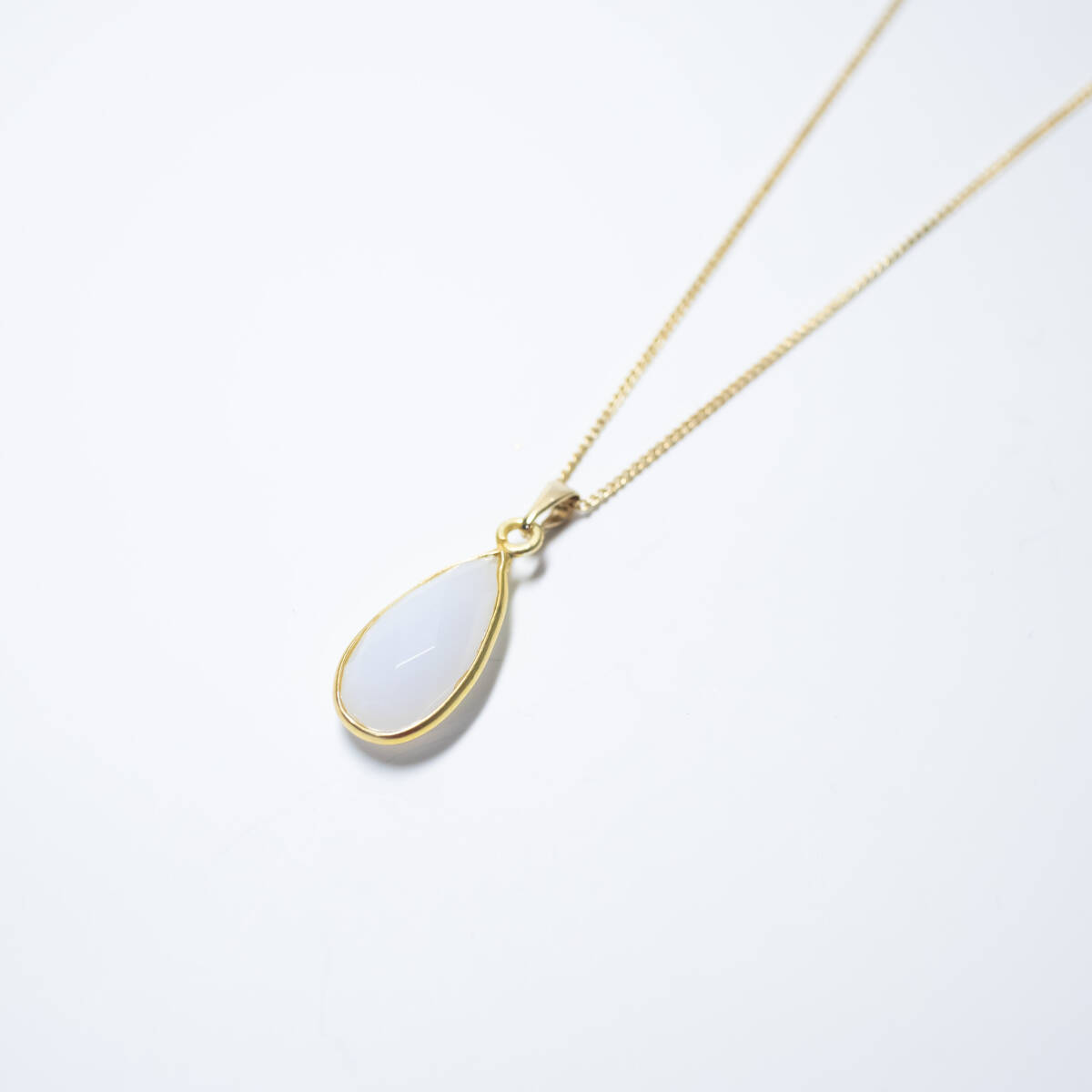 柔らかな乳白色グレーが上品に輝く、インド産グレーオニキス(ナチュラルアゲート)のネックレスです。