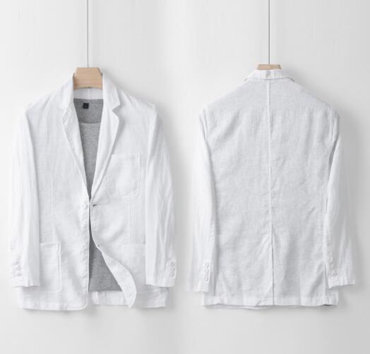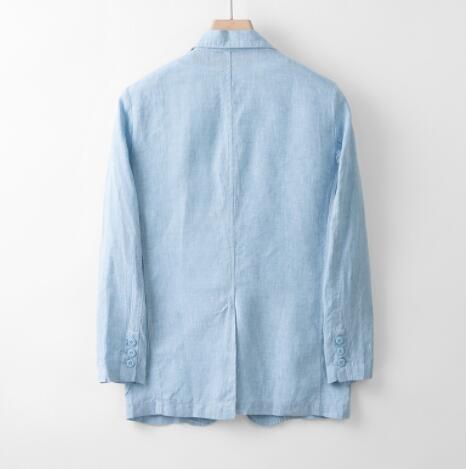 人気上質超レア メンズ テーラードジャケット 最高級 リネン100%麻 ブレザー デザイナーズ 紳士服 スーツ 無地 アウター 背広ブルー