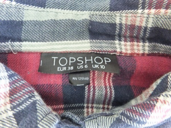 TOP SHOP トップショップ レディース チェック柄 切替 ガーゼ 長袖シャツ 10 紺赤グレー です。