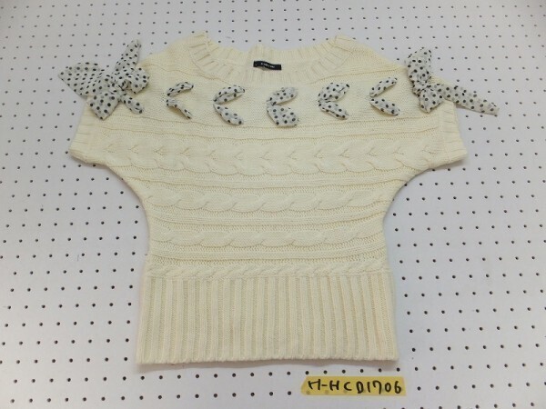 AS KNOW AS PINKY アズノウアズピンキー レディース ラグラン ドットライン ニットソー クリームオフホワイト黒 です。